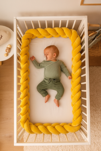 Jednym z najpopularniejszych rozwiązań jest warkocz na łóżeczko niemowlęce, czyli miękki i elastyczny ochraniacz, który można dowolnie układać wzdłuż szczebelków. Taki pleciony warkocz do łóżeczka pełni rolę amortyzatora, chroniąc dziecko przed urazami. Występuje w różnych długościach, w tym w wersji ochraniacz do łóżeczka 360 cm, która otacza całe łóżeczko, dając pełną ochronę. W zależności od potrzeb możesz wybrać krótsze lub dłuższe warianty, idealnie dopasowując je do wymiarów mebla.