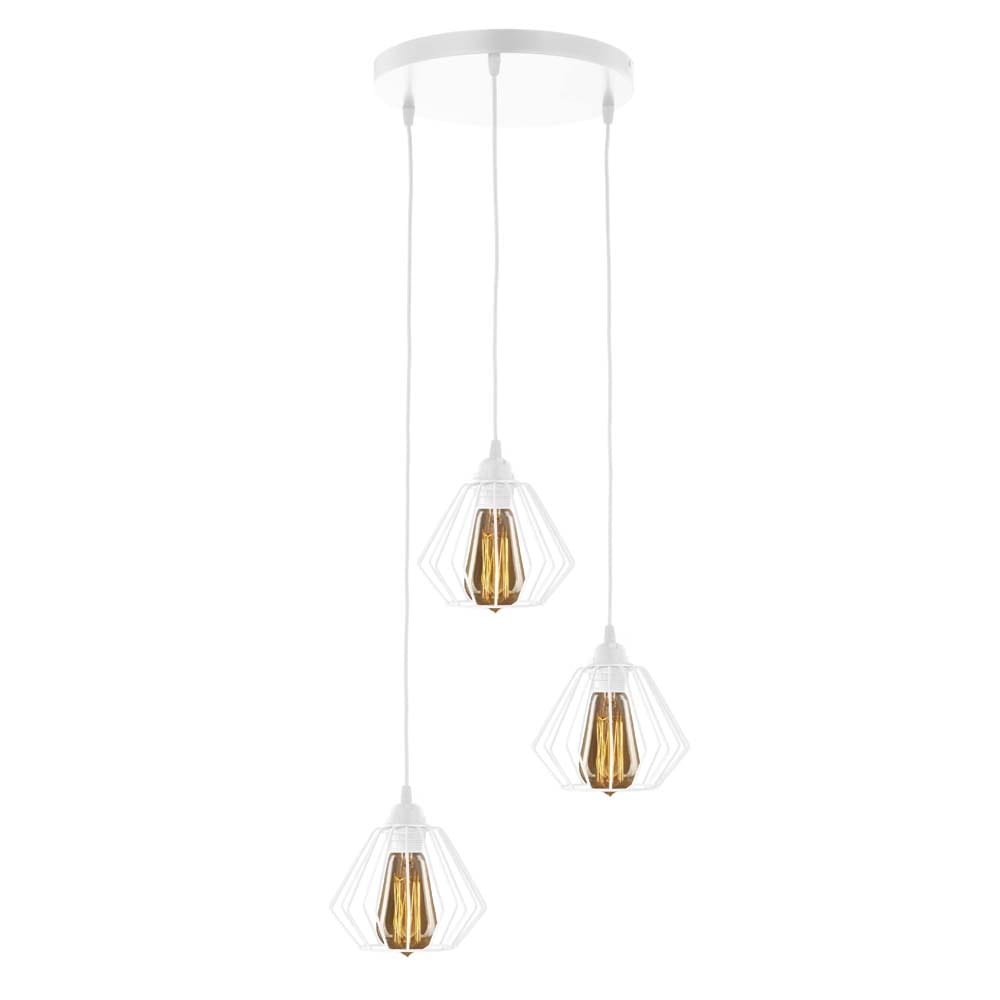 Żyrandol w stylu industrialnym ALTHEA LOFT stanowi rewelacyjną alternatywę dla typowych lamp wiszących, jakie możemy spotkać w każdym domu. Żyrandole loft są oświetleniem bardziej uniwersalnym, a co za tym idzie ich dopasowanie do reszty aranżacji jest niezwykle proste. Lampy industrialne do sypialni lub salonu powinny posiadać regulowaną wysokość tak, by zagrożenie zawadzenia o nie głową zostało wyeliminowane do minimum. Takie rozwiązanie wprowadzone zostało właśnie do lampy industrialnej ALTHEA LOFT – trzy pojedyncze zwisy można dowolnie regulować pod względem długości - ich maksymalna wartość wynosi 120 cm. Oświetlenie wyposażone jest w trzy typowe dla stylu loftowego klosze wykonane z drutu w kolorze białym, czarnym lub miedzianym. Żyrandole loftowe idealnie wpiszą się w surowe i minimalistyczne przestrzenie z elementami szkła, cegły i betonu. Ich prosty a zarazem surowy design idealnie wpisze się w loftowe sypialnie i salony. Możliwość regulacji długości zawieszenia pozwoli także na zastosowanie ALTHEA LOFT w roli lampy kuchennej lub oświetlenia nad wyspę. Żarówki w drucianych kloszach rzucają cień na otaczające ściany, co tworzy zapierającą dech w piersiach grę świateł.