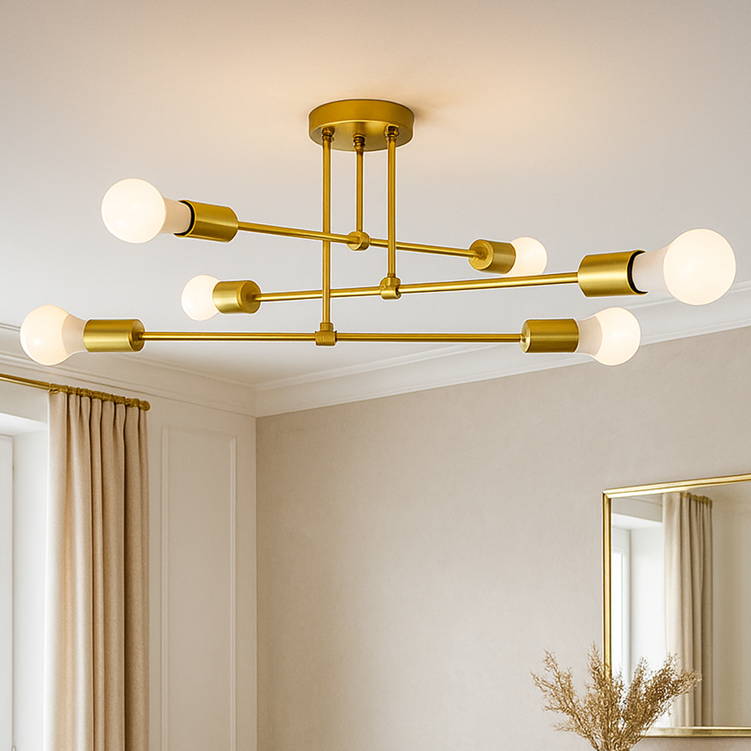 Szukasz lampy, która przyciąga wzrok i rozjaśnia wnętrze nie tylko światłem, ale też charakterem? TORI to prawdziwa gwiazda wśród plafonów! Jej sześć ramion zakończonych oprawkami E27 przypomina układ planetarny – wystarczy wkręcić żarówki, a Twój sufit zamieni się w prywatne mini-galaxy.