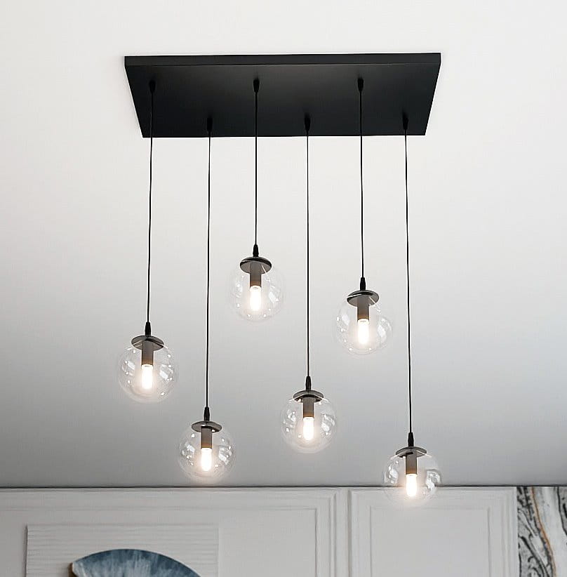 Produkt został wykonany z wysokiej jakości materiałów – połączenie szkła i metalu zapewnia trwałość oraz estetykę na najwyższym poziomie. Jeśli wpisujesz w wyszukiwarkę lampa wisząca czarna szkło, lampa z kulami szklanymi nowoczesna lub oświetlenie sufitowe do kuchni premium, ten model spełni Twoje oczekiwania.