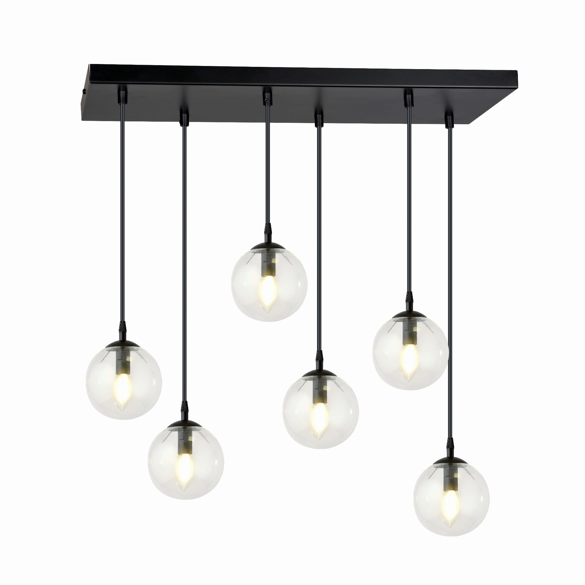 Minimalistyczna listwa w czarnym kolorze w połączeniu z sześcioma punktami świetlnymi tworzy efektowną kompozycję, która przyciąga wzrok i nadaje wnętrzu prestiżowego charakteru. Transparentne klosze wykonane ze szkła typu opalina delikatnie rozpraszają światło, co czyni tę lampę idealną jako oświetlenie nad stół, lampa nad wyspę kuchenną czy lampa do jadalni nowoczesna. To także świetna opcja dla osób szukających fraz takich jak lampa sufitowa 6 punktowa, lampa listwa czarna czy lampa z kulami szklanymi.