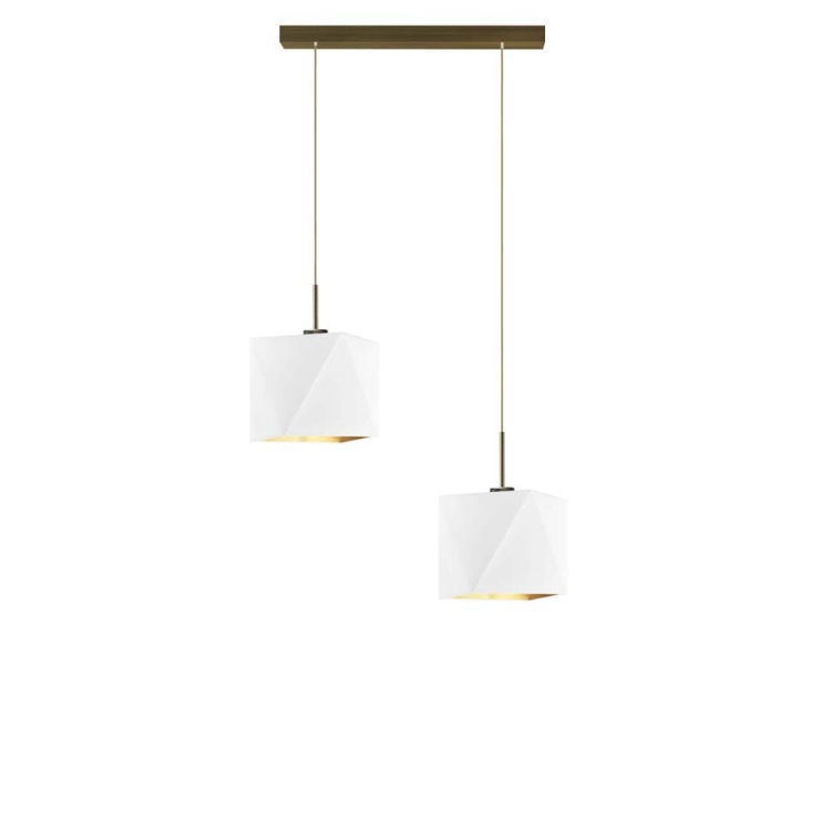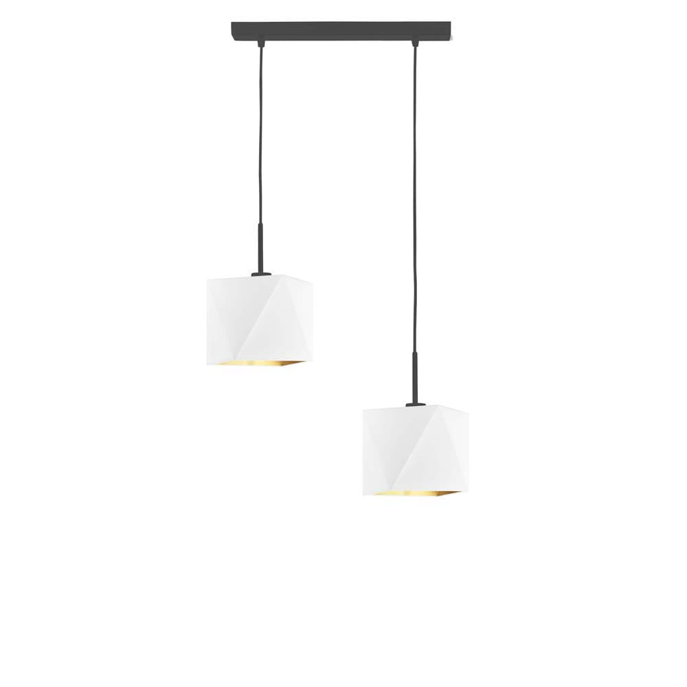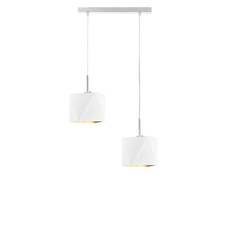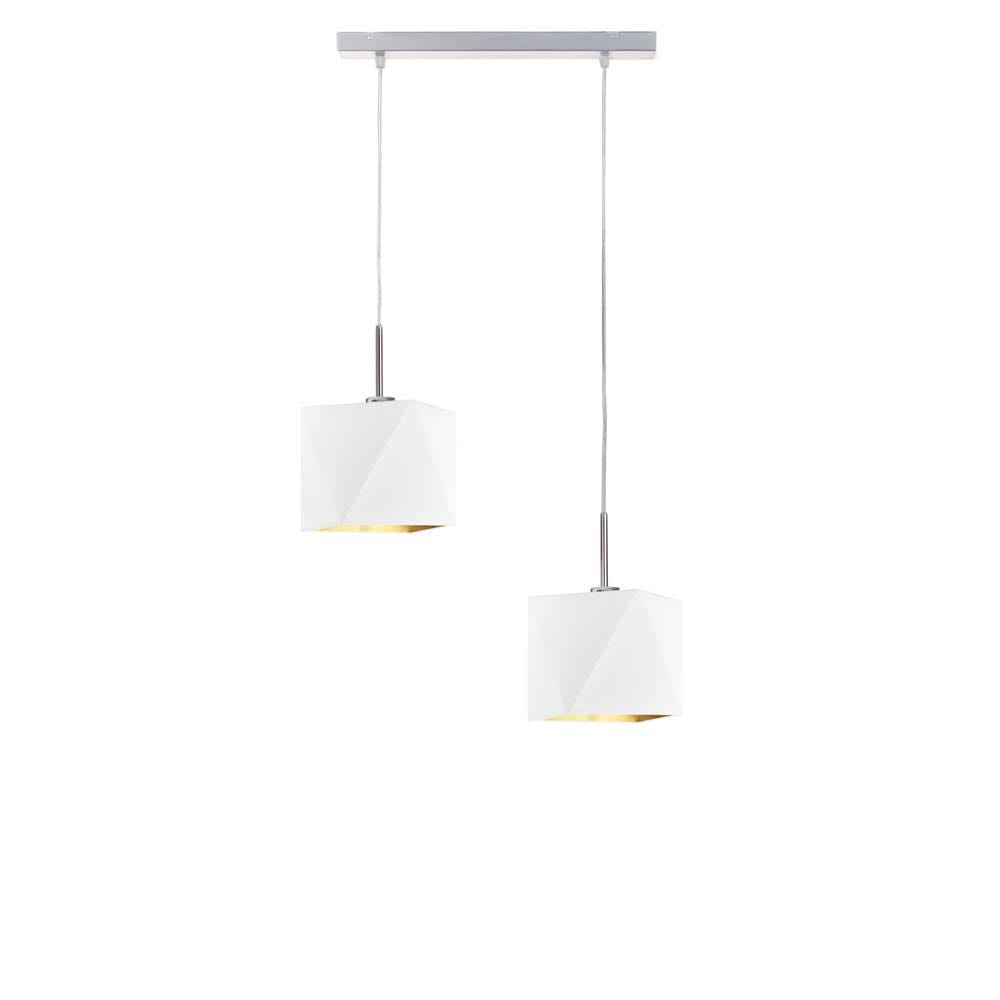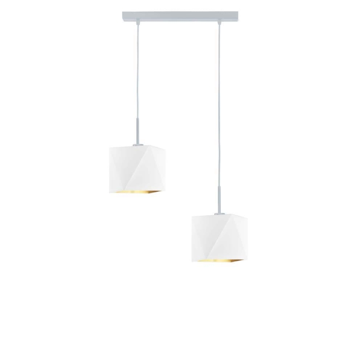 Biała lampa wisząca 2 punktowa na listwie DELIA GOLD z abażurami ze złotym wnętrzem