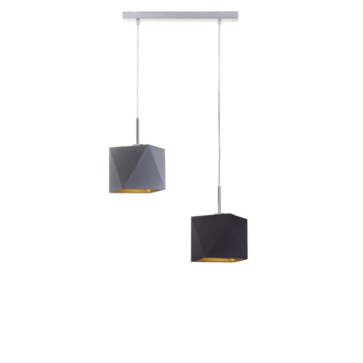 Nowoczesne oświetlenie DELIA GOLD to świetna propozycja do stylowych salonów, sypialni a także do domowego biura. Efektownie prezentować się będzie również umieszczona nad stołem lub wyspą. Lampa wprowadza unikatowy nastrój w każdym pomieszczeniu, a dwa geometryczne klosze rozpraszają dekoracyjnie światło na całą przestrzeń, przy czym dają dużą ilość światła, która rozjaśni nawet najciemniejszy zakamarek. Tkaninowe abażury posiadają złote wnętrze, które dostępne jest w dwóch fakturach powierzchni: zmatowionej w wersji z czernią, zielenią, szarością i granatem oraz błyszczącą w połączeniu z białym kloszem. Złote wnętrze ociepla atmosferę panującą w domu, przy czym staje się dekoracją, od której nie jesteśmy w stanie oderwać wzroku. Metalowa konstrukcja lampy wykonana z najwyższej jakości komponentów pozwala nam na bezpieczne i długotrwałe korzystanie z oświetlenia. Wysokość lampy możemy dowolnie regulować według własnych potrzeb aż do 120 cm, natomiast zastosowane dwie oprawki E27, umożliwiają nam szeroki wybór oferowanych żarówek.