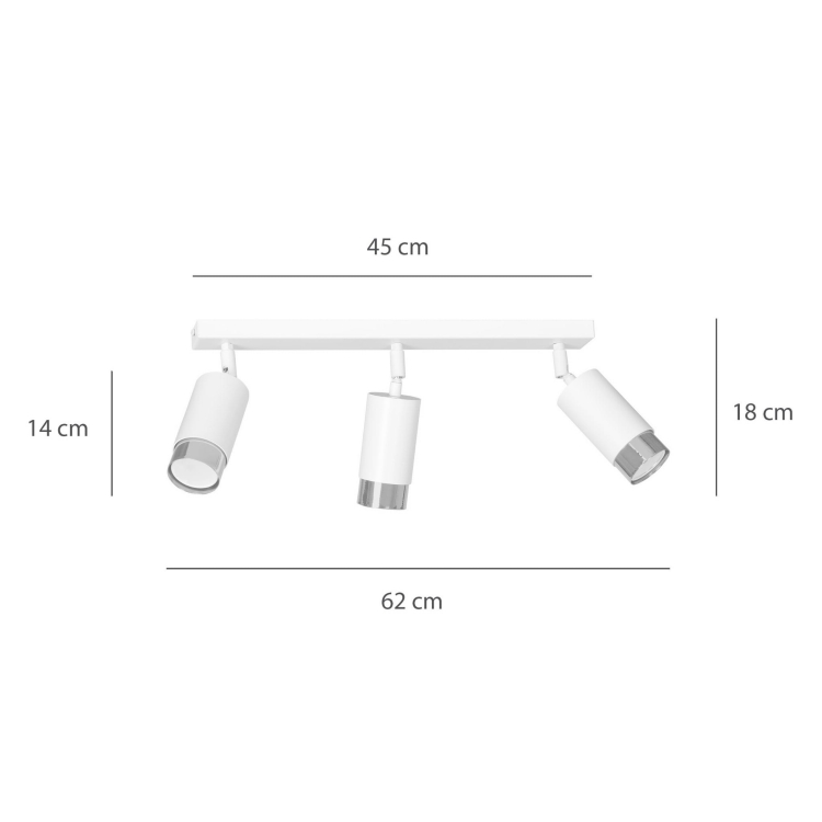 Biała listwa sufitowa z trzema reflektorami KEIKO biały/chrom