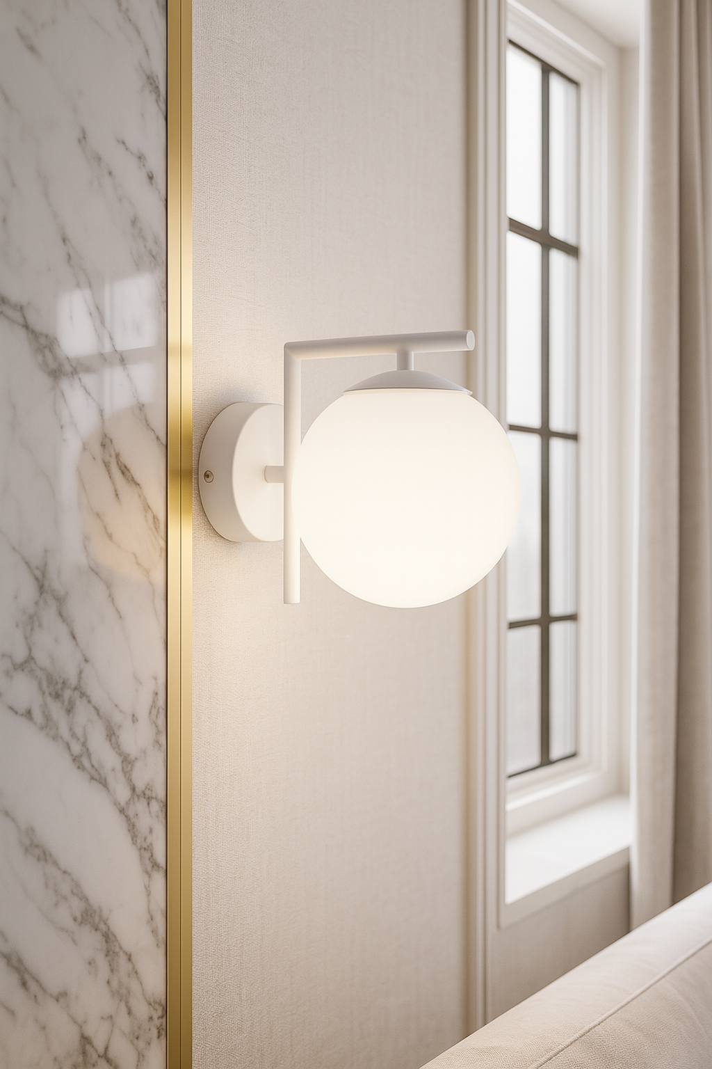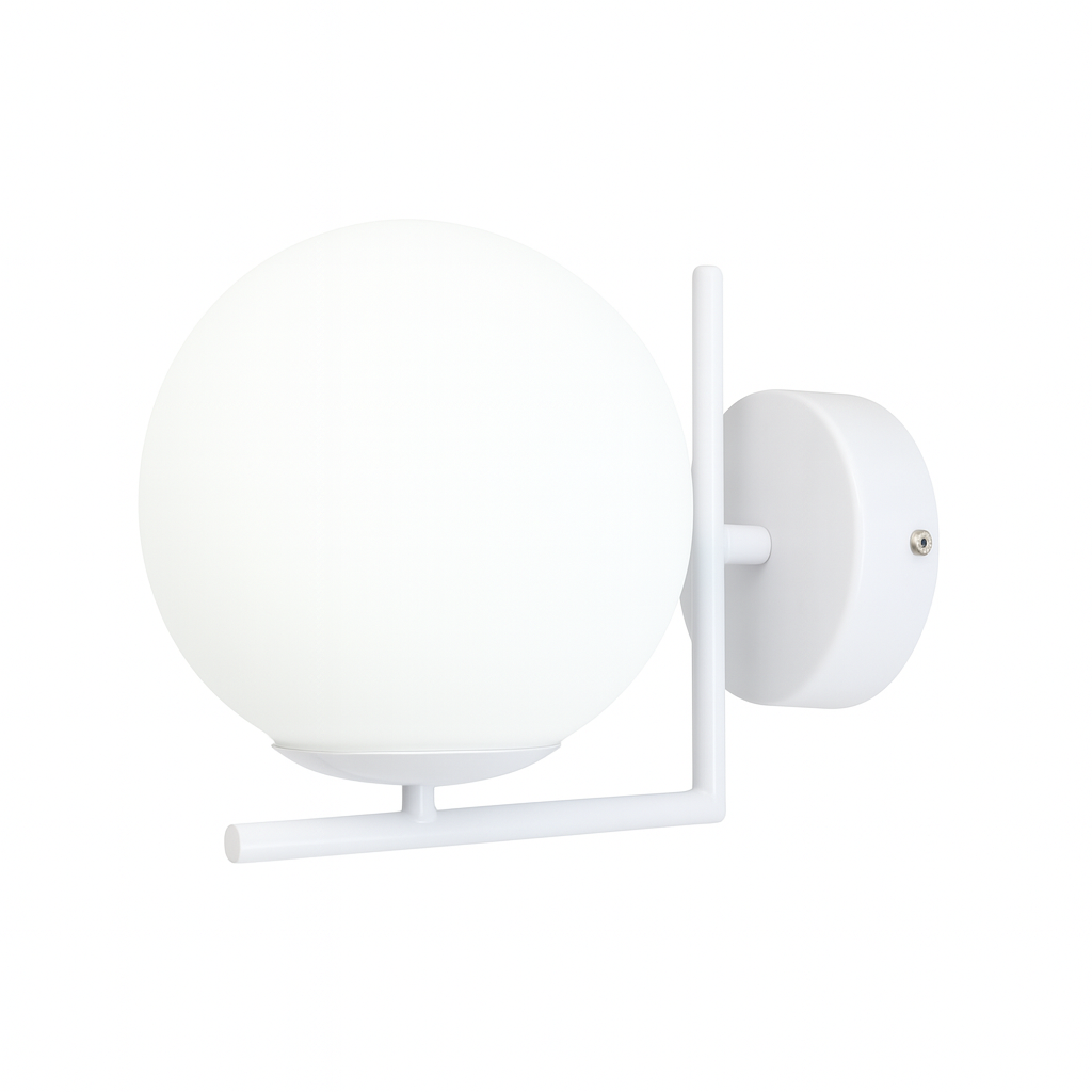 Kinkiet BANG biały to połączenie minimalizmu i efektownego designu. Dzięki kulistemu kloszowi z mlecznego szkła daje przyjemne, rozproszone światło, które doskonale sprawdzi się w salonie, sypialni, korytarzu czy biurze. Prosta, geometryczna forma i biały kolor czynią z niego uniwersalny biały kinkiet ścienny, pasujący do wnętrz urządzonych w stylu nowoczesnym, skandynawskim czy industrialnym.