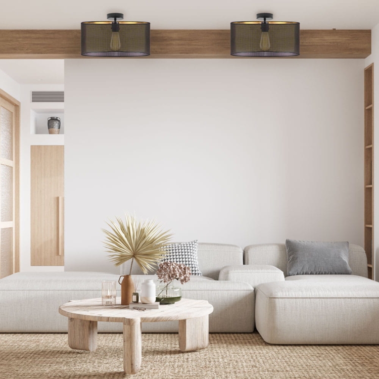 Lampa BELLA AŻUR o średnicy 40 cm to propozycja dla osób, które cenią styl, subtelność i dekoracyjny efekt świetlny. Jej charakterystyczny, ażurowy abażur w kolorze czarnym tworzy na ścianach i suficie nastrojowe refleksy, nadając wnętrzu przytulny i jednocześnie nowoczesny klimat. W zależności od preferencji, wnętrze abażuru może być wykończone w eleganckim złocie, które ociepla światło, lub w klasycznej czerni, podkreślającej minimalistyczny charakter lampy.