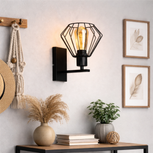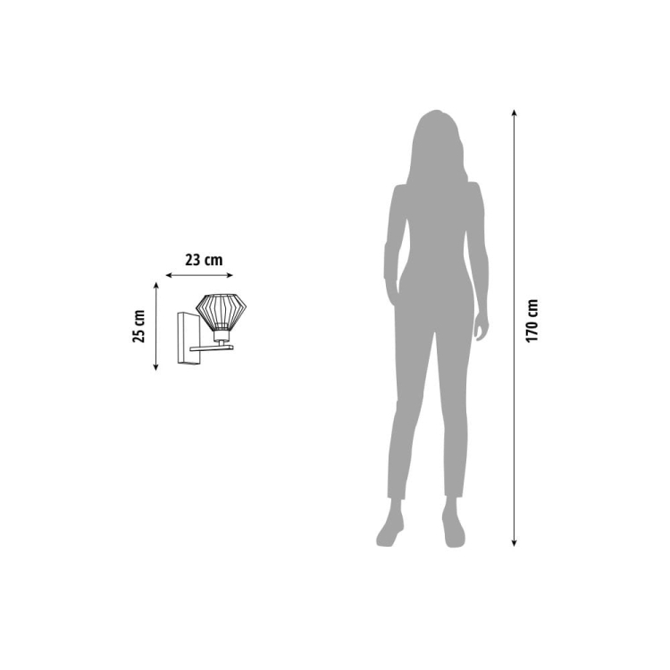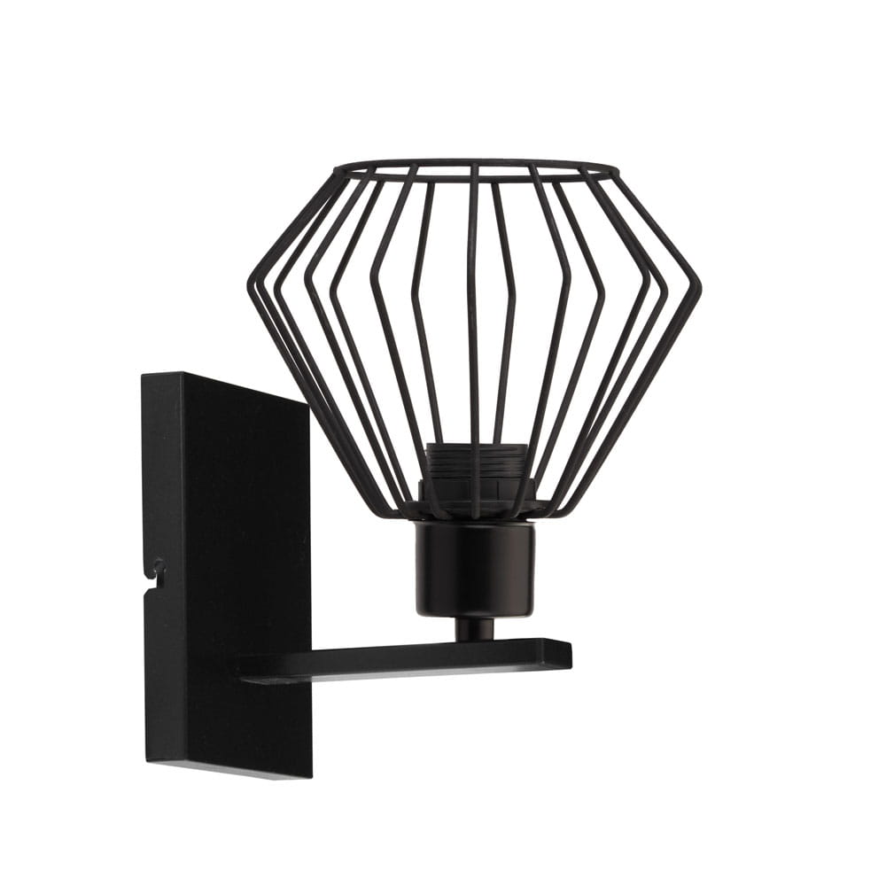 To oświetlenie ścienne zostało zaprojektowane z myślą o osobach, które cenią modne lampy loft, czarne kinkiety oraz nowoczesne lampy do salonu, sypialni czy przedpokoju. Geometryczny, druciany klosz w formie metalowej klatki nadaje lampie wyrazisty charakter, a jednocześnie pięknie eksponuje dekoracyjną żarówkę typu Edison.