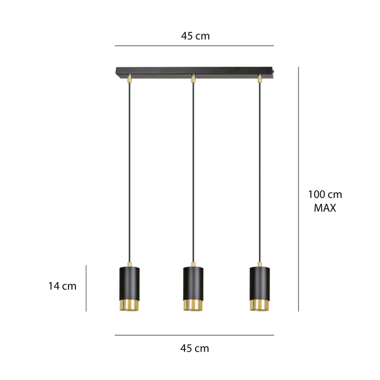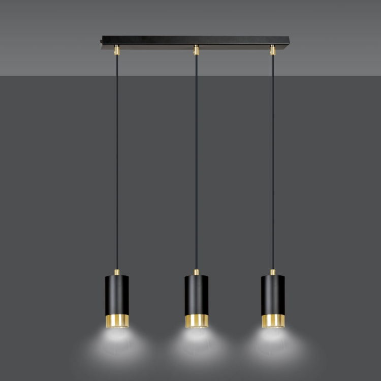 Czarno-złota lampa wisząca na belce nad stół RONNIE czarny/złoty