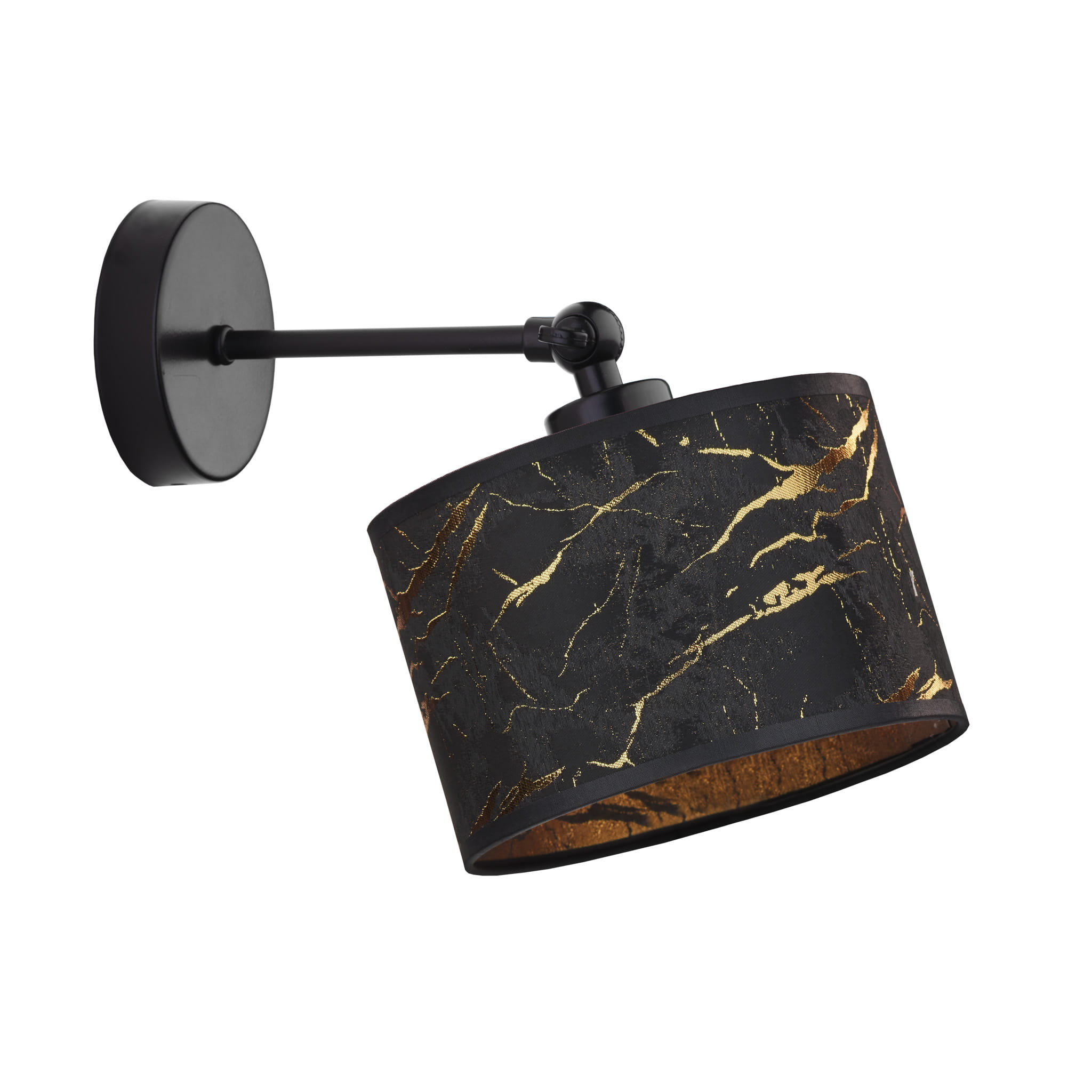 Największym wyróżnikiem modelu jest abażur z eleganckim motywem marmuru. To sprawia, że lampa doskonale wpisuje się w trendy takie jak styl glamour oświetlenie, nowoczesne oświetlenie ścienne czy designerskie lampy ścienne. Wnętrze abażuru w ciepłym, złotym kolorze odbija światło, tworząc przytulny blask i podkreślając klimat wnętrza.