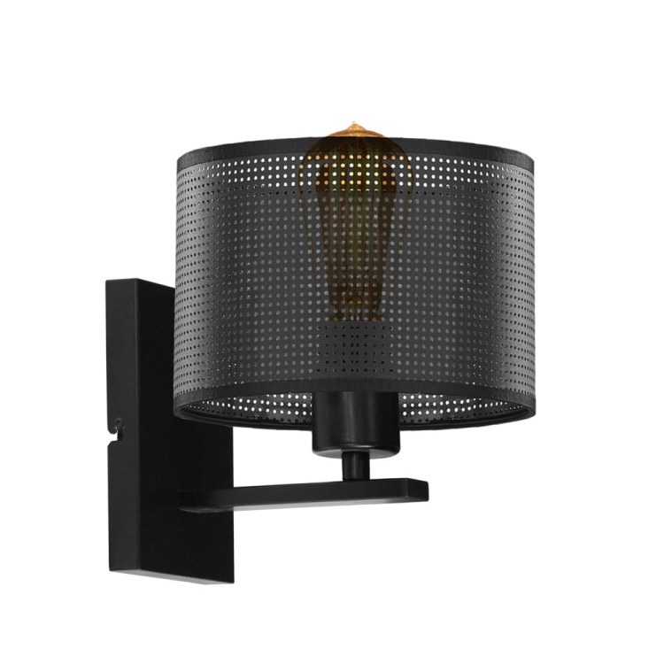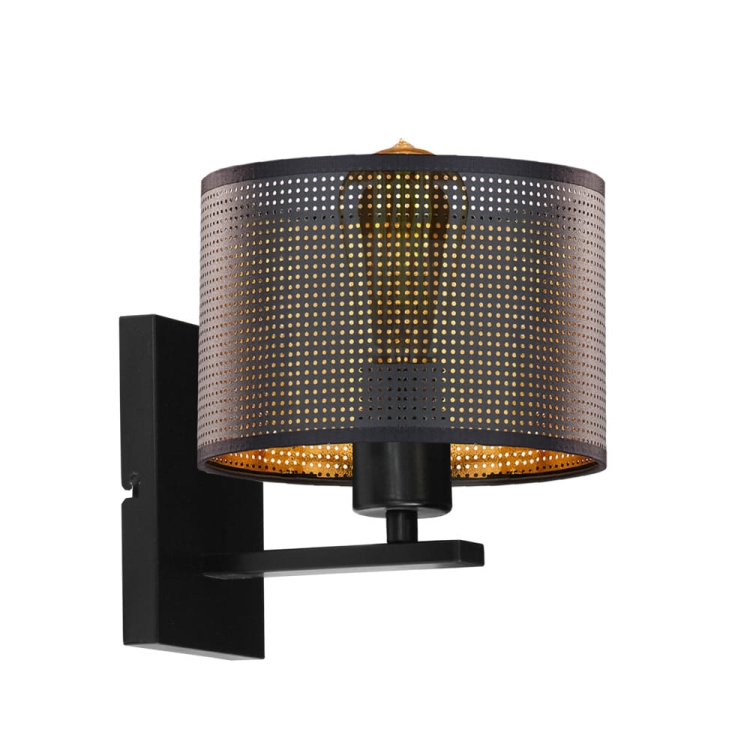 Najbardziej charakterystycznym elementem lampy jest perforowany abażur, który odpowiada za niepowtarzalny efekt świetlny. Dzięki niemu kinkiet działa jak subtelne oświetlenie nastrojowe, idealne jako lampka ścienna do sypialni, kinkiet do przedpokoju lub oświetlenie ścienne do korytarza. Światło przenikające przez ażurową strukturę tworzy przytulną atmosferę, dlatego model świetnie sprawdza się również jako kinkiet do salonu lub dodatkowe oświetlenie dekoracyjne.