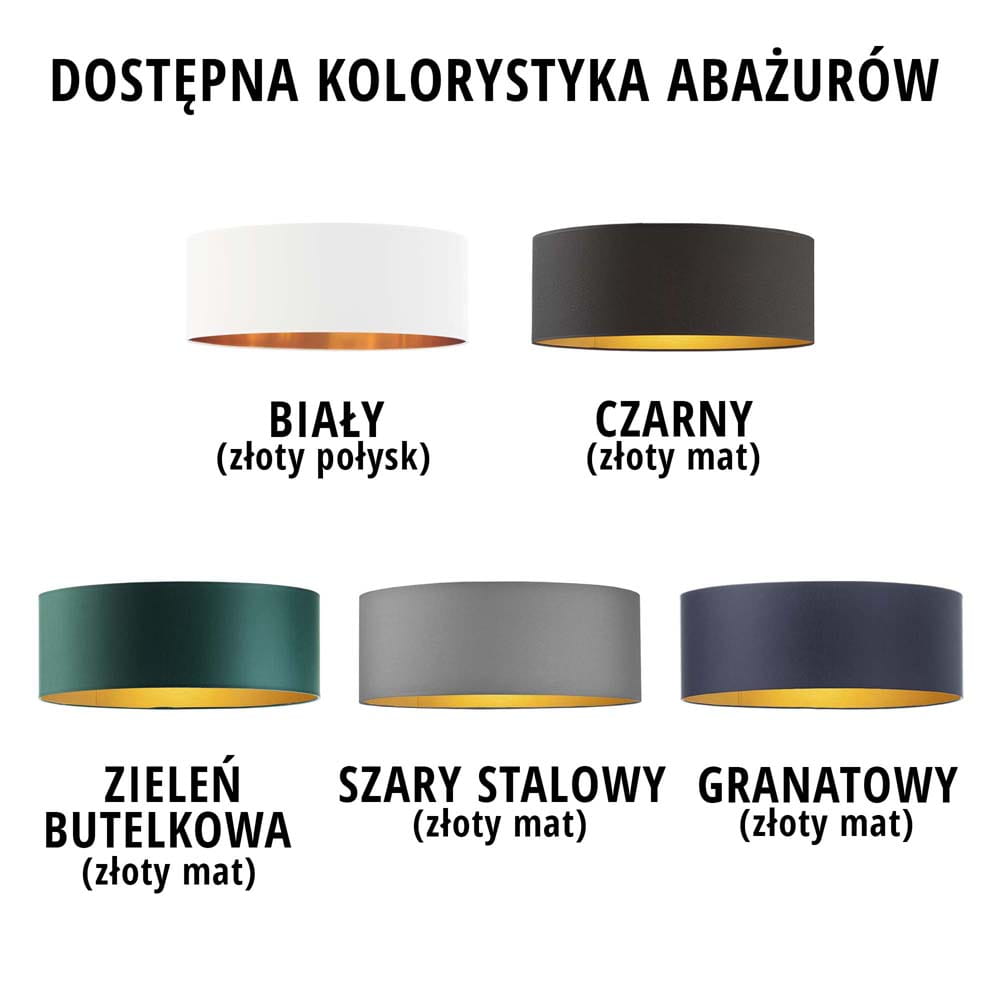 Jednym z największych atutów modelu SAMANTA GOLD jest szeroka gama kolorystyczna. Zarówno abażur, jak i podstawę lampy można dopasować do indywidualnych potrzeb i wystroju wnętrza. Dostępne są warianty klasyczne – jak czarny, biały, szary – oraz modne kolory takie jak butelkowa zieleń, granat, beż, pudrowy róż czy musztardowy.