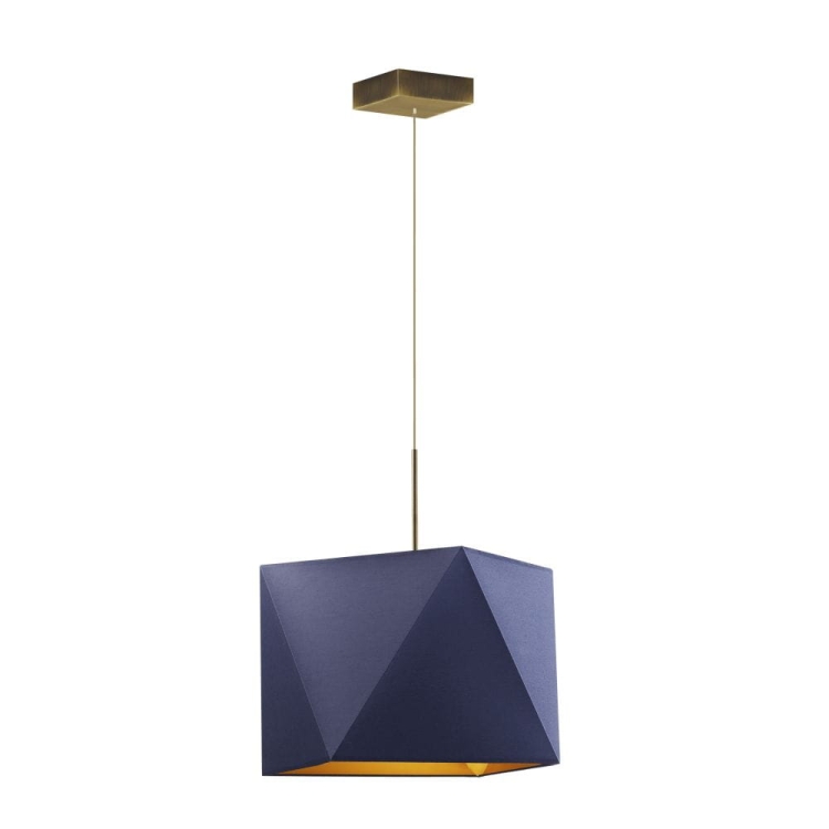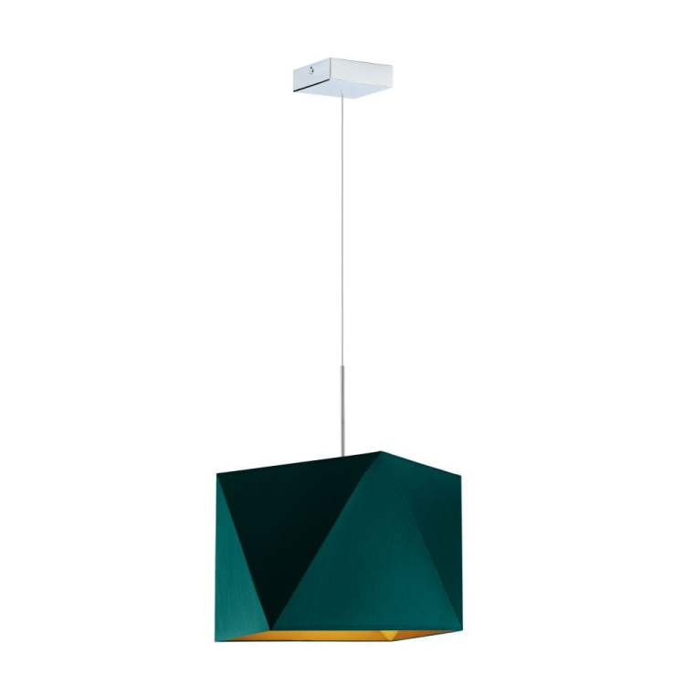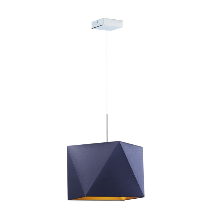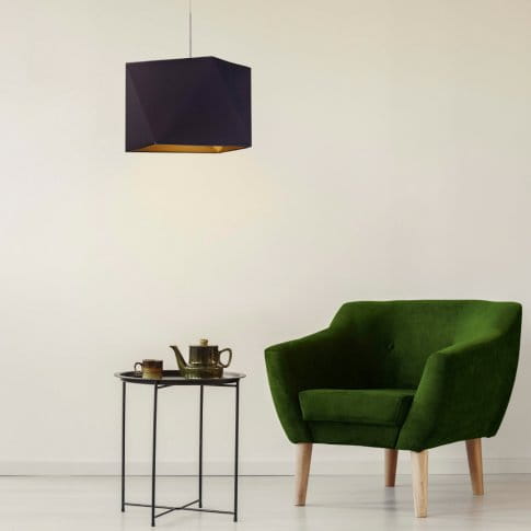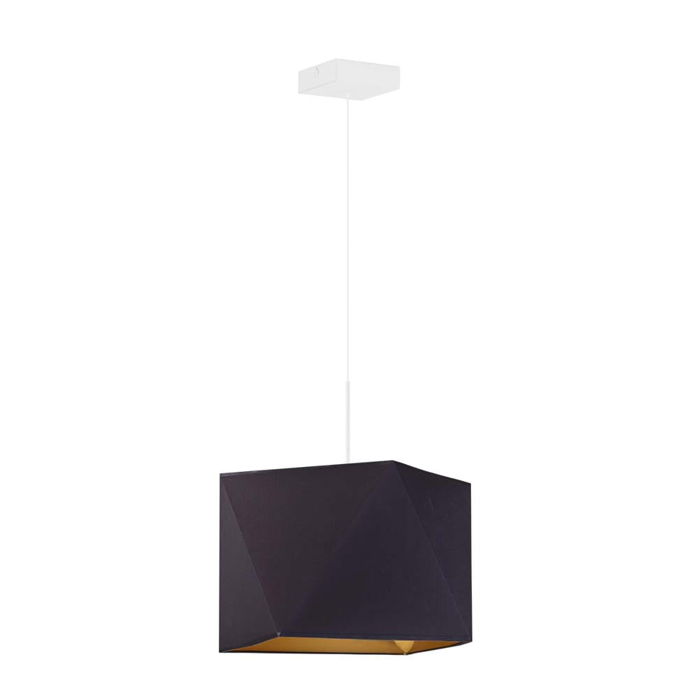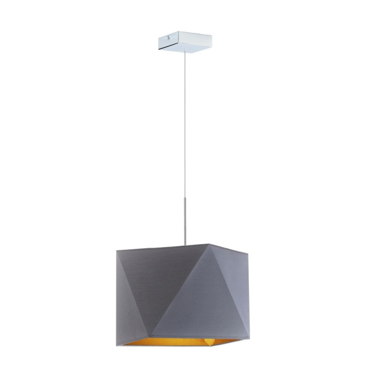 Przedstawiona lampa wisząca BENITA GOLD to propozycja oświetlenia wewnętrznego utrzymanego w nowoczesnym stylu. Model ten wyróżnia złote wnętrze diamentowego abażura, które pod wpływem światła wprowadza do wnętrza pełną elegancji i komfortu atmosferę. Konstrukcja lampy wykonana została z elementów metalowych a jej geometryczny abażur z holenderskiej tkaniny tekstylnej, która wewnątrz wypełniona jest złotą folią w dwóch fakturach powierzchni – błyszczącej oraz matowej. Błyszcząca powierzchnia występuje w wersji z białym kloszem, natomiast matowa łącząc się z czernią, zielenią, szarością i granatem. Oświetlenie BENITA GOLD bez problemu wkomponuje się w przestrzenie salonowe, kuchenne a także w lokale użytkowe, którymi mogą być efektowne pokoje hotelowe czy też luksusowe butiki. Dużym atutem lampy jest możliwość regulacji jej wysokości aż do 120 cm, dzięki czemu możemy zastosować ją w różnego rodzaju pomieszczeniach. Prezentowana lampa posiada miejsce na jedną oprawkę E27 oraz dostosowana jest do źródeł światła o klasach energetycznych od A++ do E oraz żarówek LED.