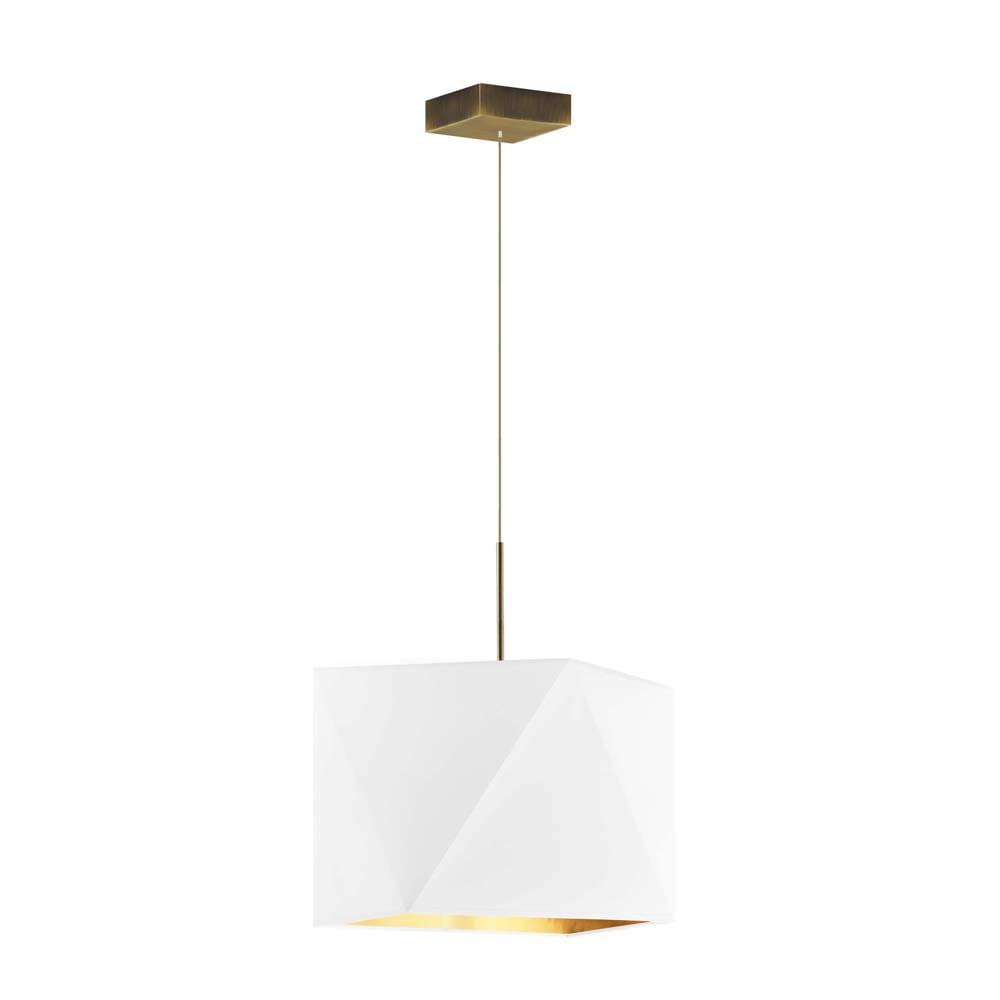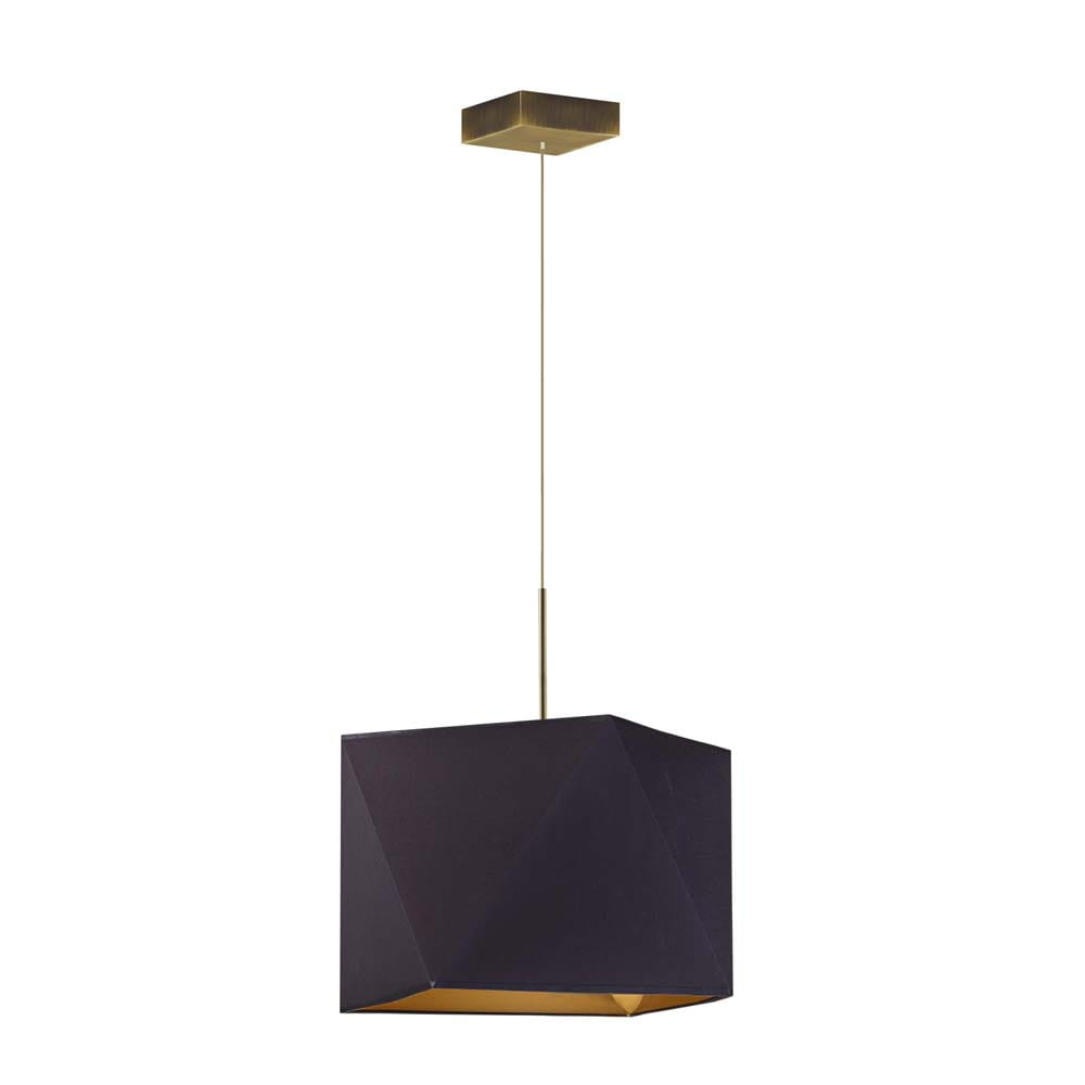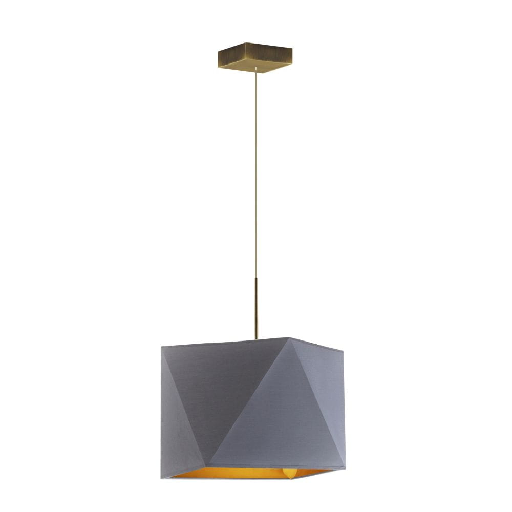 Przedstawiona lampa wisząca BENITA GOLD to propozycja oświetlenia wewnętrznego utrzymanego w nowoczesnym stylu. Model ten wyróżnia złote wnętrze diamentowego abażura, które pod wpływem światła wprowadza do wnętrza pełną elegancji i komfortu atmosferę. Konstrukcja lampy wykonana została z elementów metalowych a jej geometryczny abażur z holenderskiej tkaniny tekstylnej, która wewnątrz wypełniona jest złotą folią w dwóch fakturach powierzchni – błyszczącej oraz matowej. Błyszcząca powierzchnia występuje w wersji z białym kloszem, natomiast matowa łącząc się z czernią, zielenią, szarością i granatem. Oświetlenie BENITA GOLD bez problemu wkomponuje się w przestrzenie salonowe, kuchenne a także w lokale użytkowe, którymi mogą być efektowne pokoje hotelowe czy też luksusowe butiki. Dużym atutem lampy jest możliwość regulacji jej wysokości aż do 120 cm, dzięki czemu możemy zastosować ją w różnego rodzaju pomieszczeniach. Prezentowana lampa posiada miejsce na jedną oprawkę E27 oraz dostosowana jest do źródeł światła o klasach energetycznych od A++ do E oraz żarówek LED.