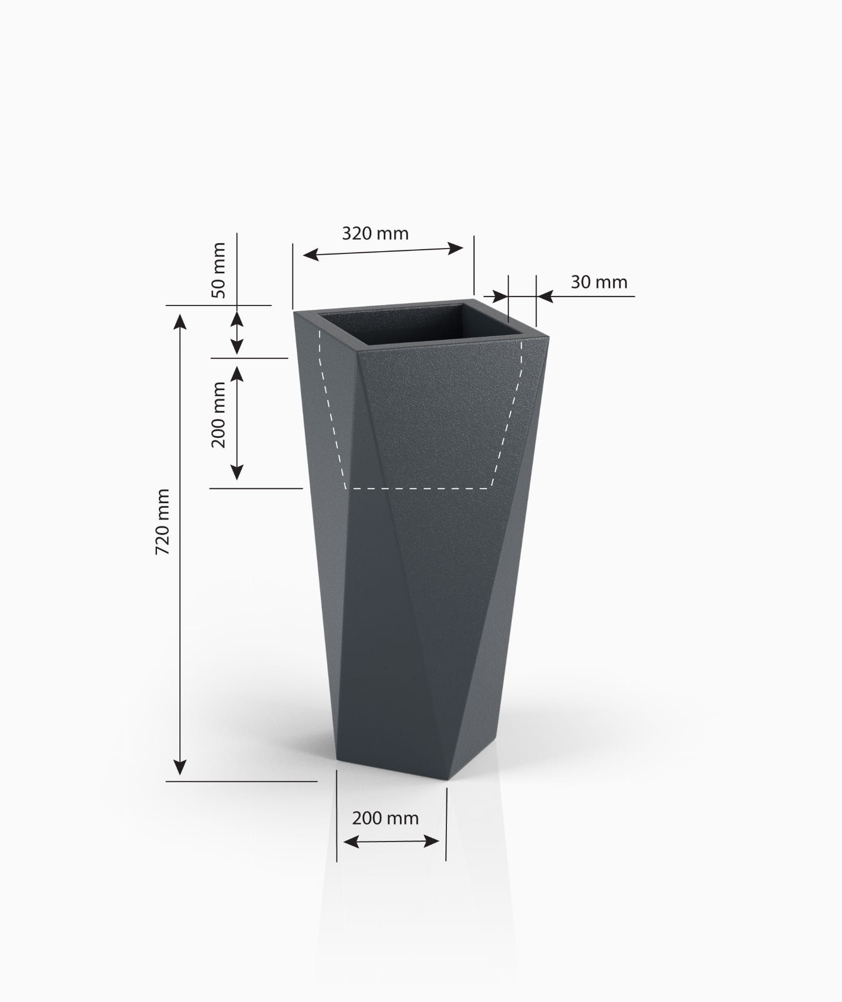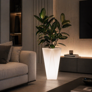 Produkt polski, zaprojektowany z dbałością o detale, posiada eleganckie, matowe wykończenie, które podkreśla nowoczesny charakter przestrzeni. Donica o wymiarach 32 x 32 cm i wysokości 72 cm idealnie eksponuje rośliny ozdobne, tworząc efektowną aranżację. Dodatkowe podświetlenie RGB pozwala stworzyć wyjątkowy klimat i dopasować oświetlenie do nastroju.