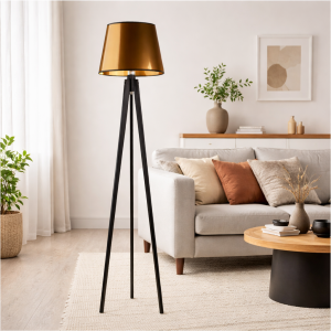 Drewniana lampa podłogowa IBBIE MIRROR to idealny wybór dla osób, które poszukują designerskiego oświetlenia do swojego domu. Solidna konstrukcja na trzech nogach sprawia, że ta lampa stojąca jest stabilna i efektowna, a jednocześnie świetnie wpisuje się w nowoczesne aranżacje wnętrz. Charakterystycznym elementem lampy jest lustrzany abażur, dostępny w kolorze złotym lub miedzianym, który w wyjątkowy sposób odbija światło, tworząc nastrojową atmosferę w salonie, sypialni czy biurze.