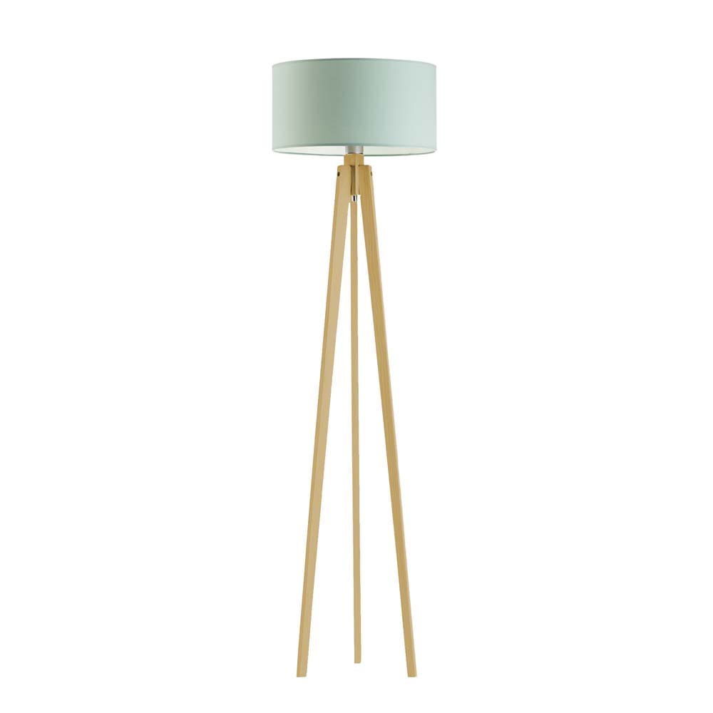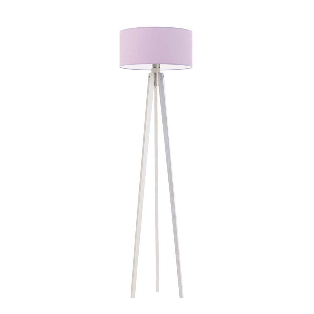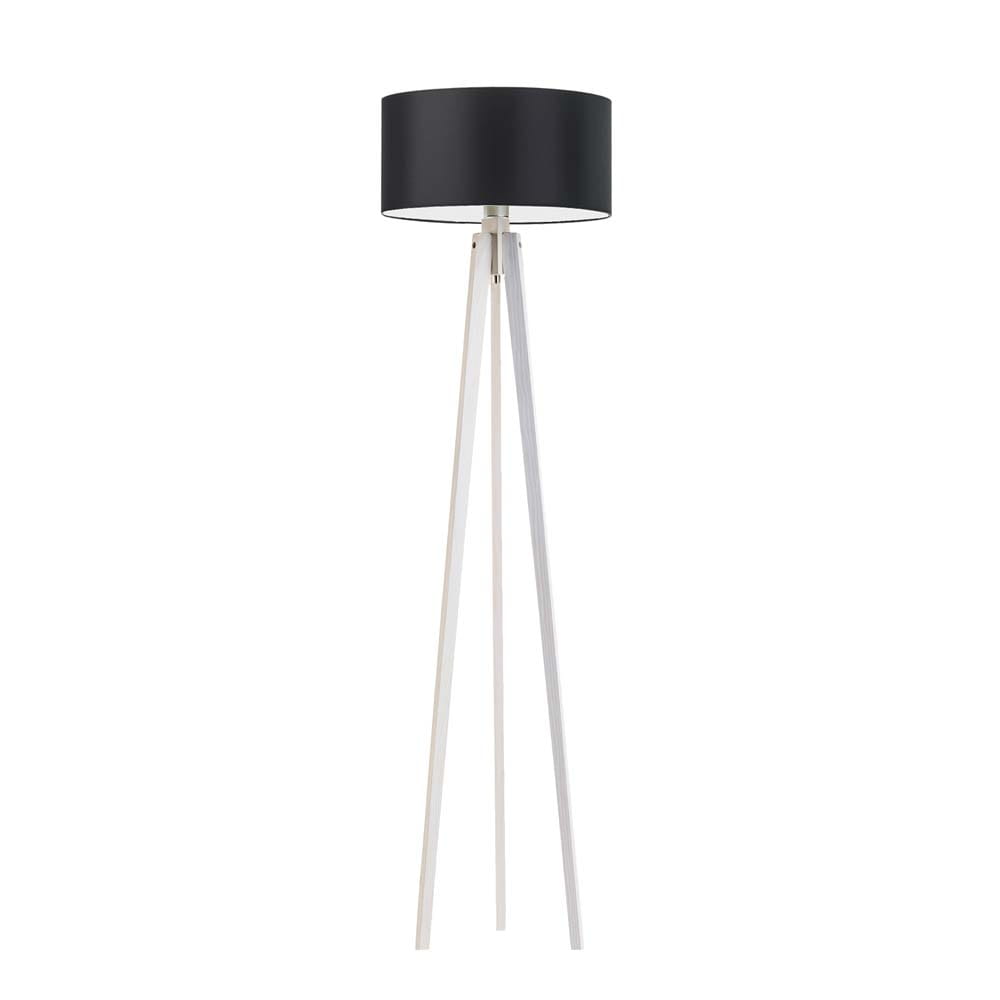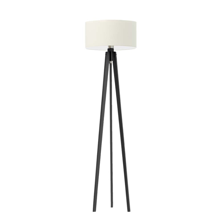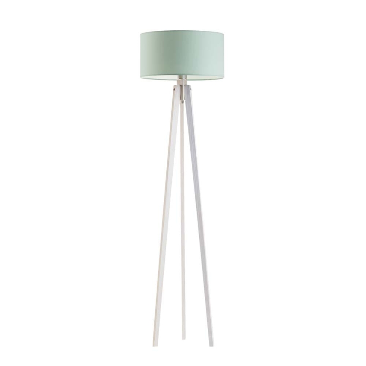 Drewniana lampa stojąca na 3 nogach z białym abażurem MARY
