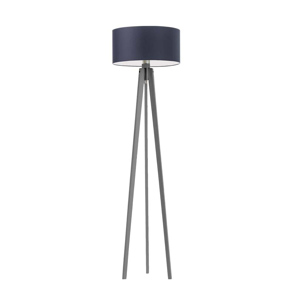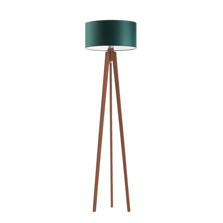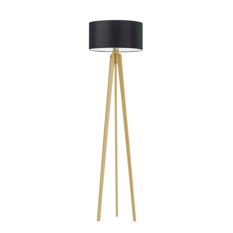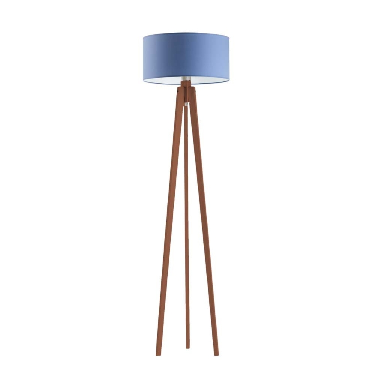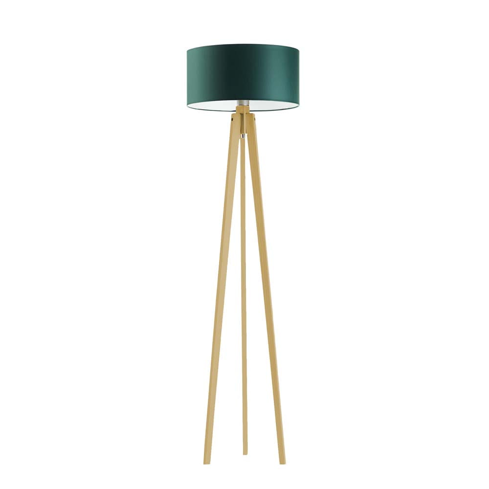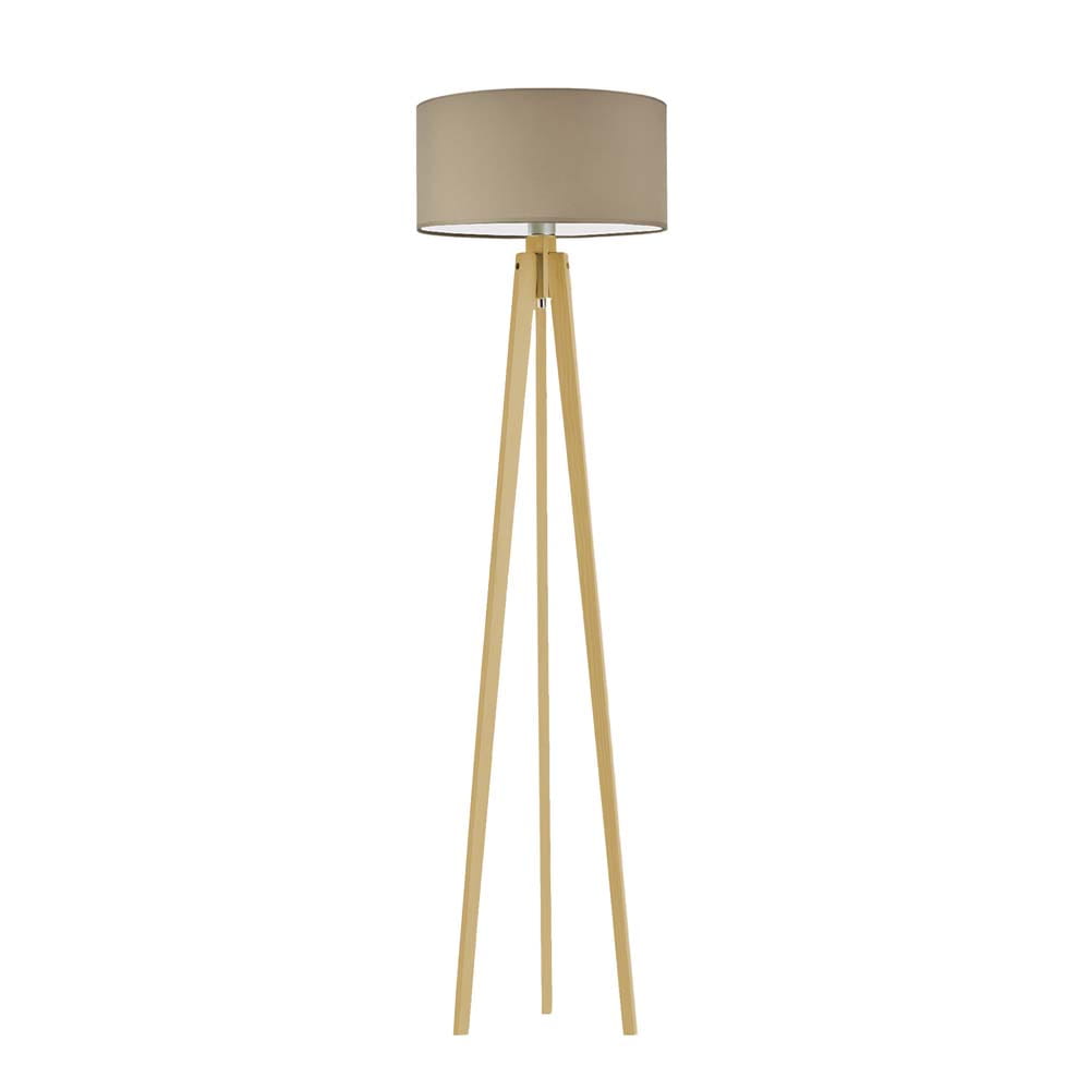 Drewniana lampa stojąca na 3 nogach z białym abażurem MARY
