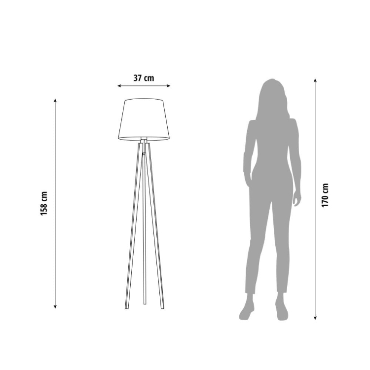 Wymiary lampy: wysokość 158 cm, szerokość 37 cm