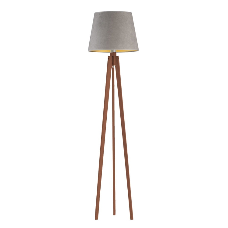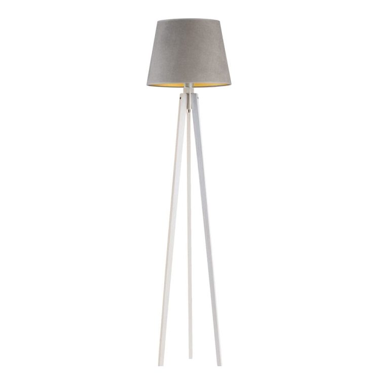 Drewniana lampa stojąca trójnóg welurowa IBBIE VELUR