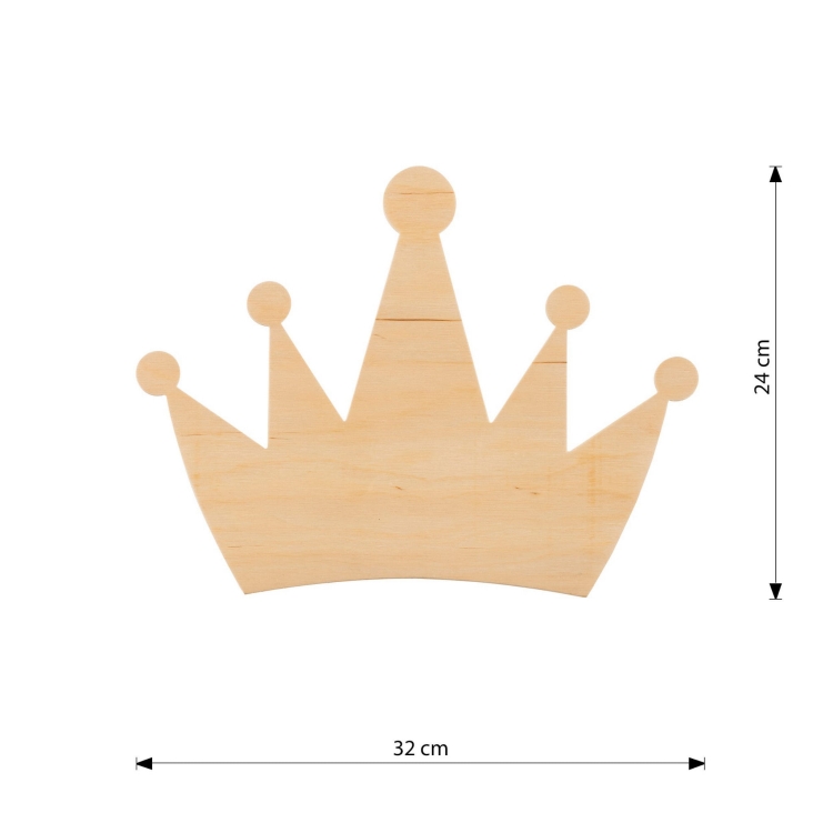 Kinkiet ma wymiary 24 × 32 cm, dzięki czemu świetnie sprawdzi się jako mała lampka ścienna, lampka nocna nad łóżko lub oświetlenie dekoracyjne do pokoju dziecka. Jego kształt korony doskonale wpisuje się w aranżacje w stylu skandynawskim, boho, minimalistycznym i nowoczesnym. To nie tylko drewniana lampka dla dzieci, ale również stylowa dekoracja ścienna do pokoju dziecięcego.