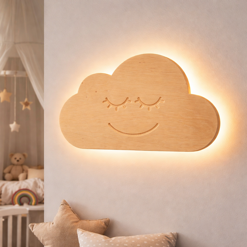 Kinkiet dziecięcy NUVOLA – drewniana chmurka z ciepłym światłem