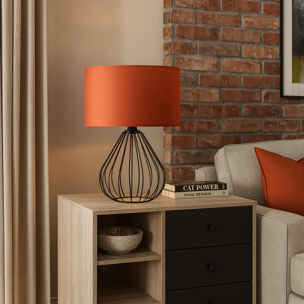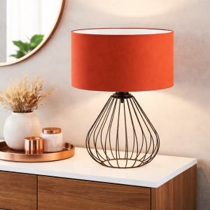 Druciana lampa stołowa to salonu MELANIE z ceglastym kloszem