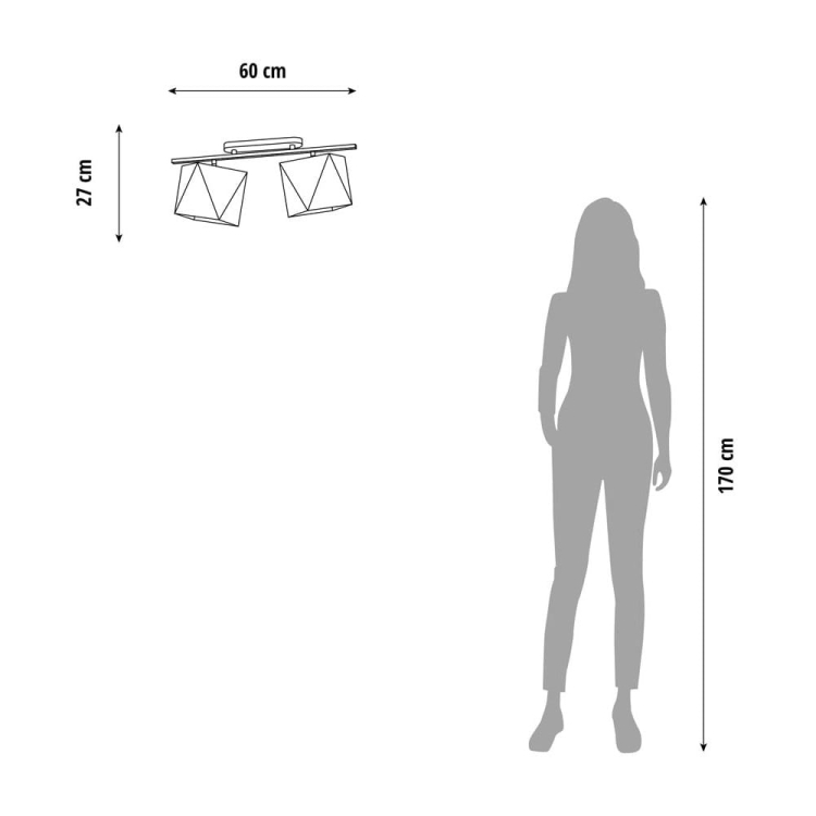 Wymiary lampy: wysokość – 27 cm, szerokość – 60 cm