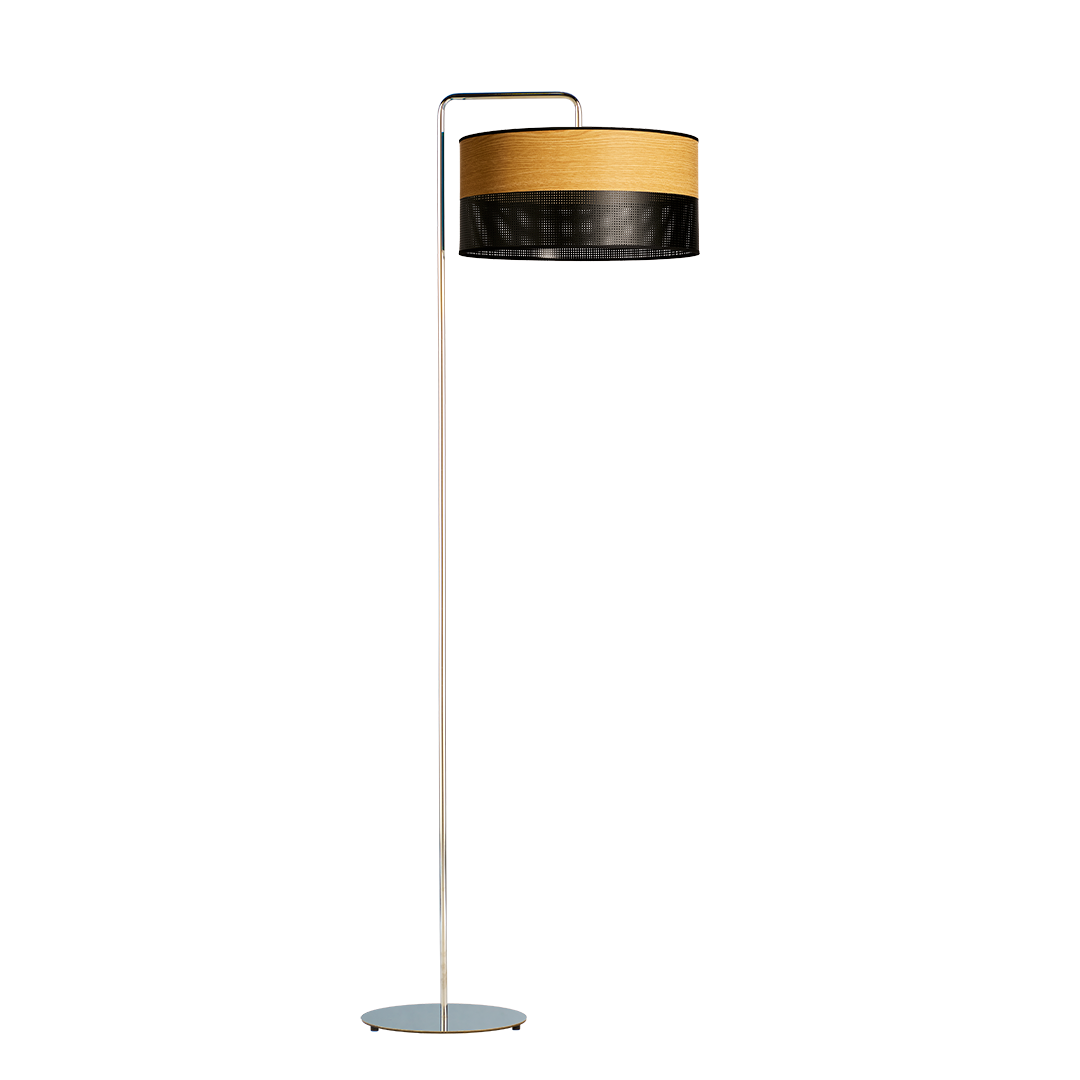 Lampa podłogowa JASMINE FORNIŻUR to połączenie wyjątkowego designu i ponadczasowej elegancji. To nowoczesna lampa stojąca, która zachwyca oryginalnym abażurem – wykonanym z materiału imitującego naturalne drewno i uzupełnionym o ażurową tkaninę. Ten nietuzinkowy duet sprawia, że lampa prezentuje się niezwykle efektownie, a jednocześnie wprowadza do wnętrza ciepło i przytulność charakterystyczną dla naturalnych materiałów.