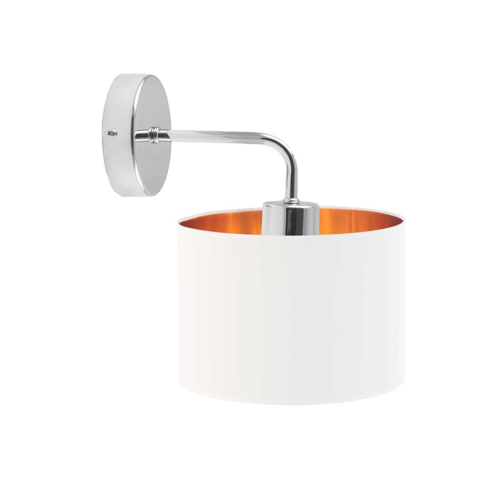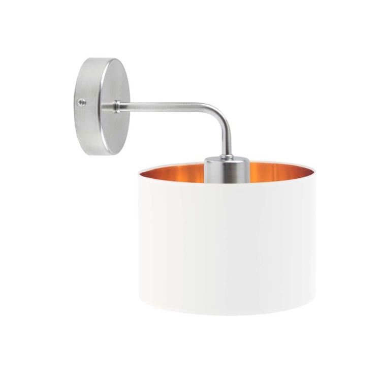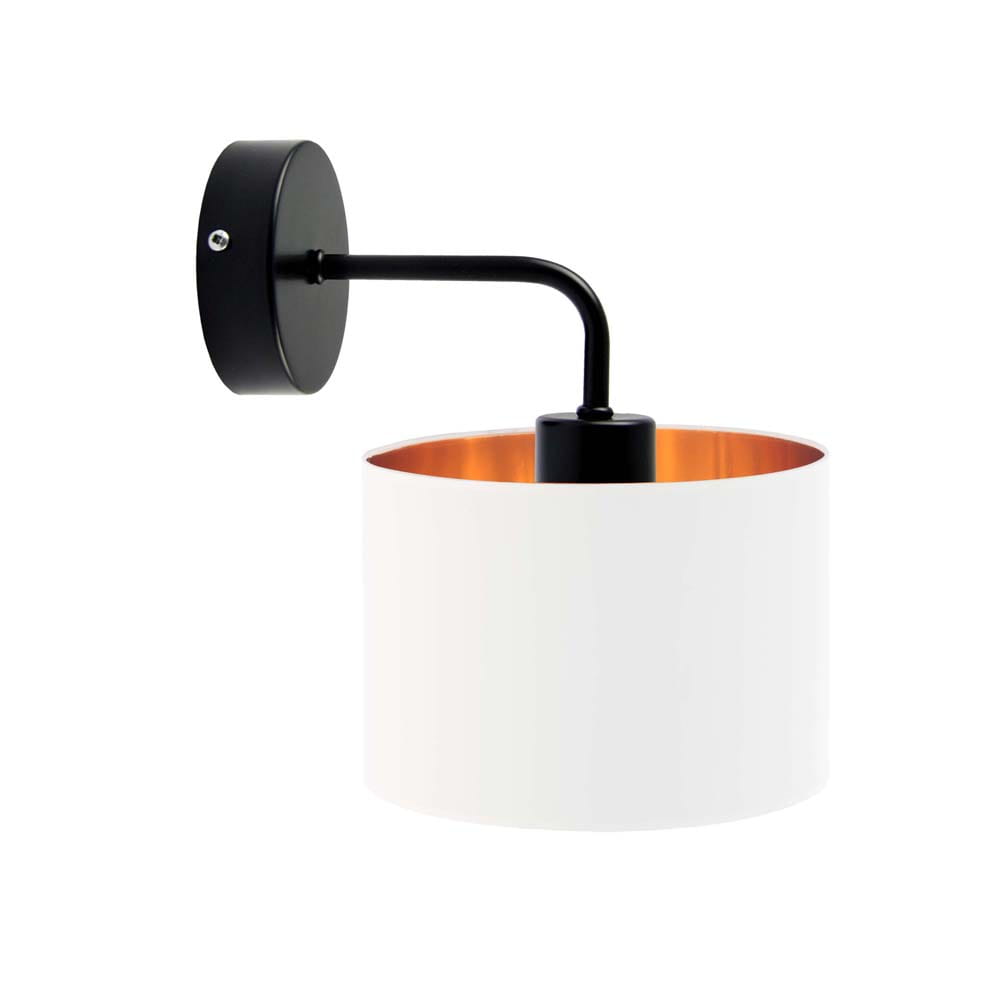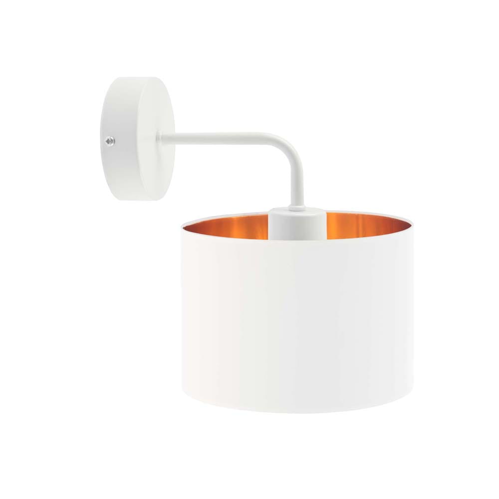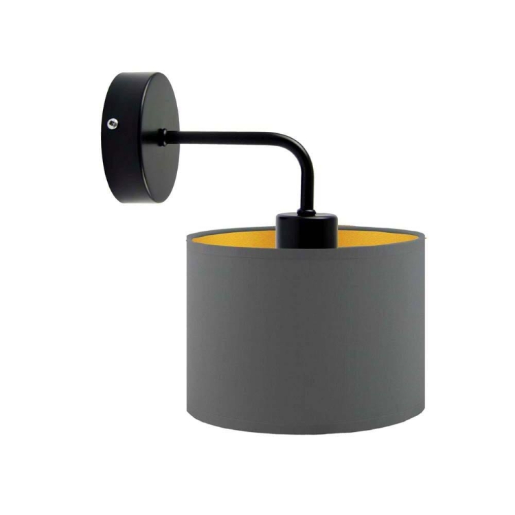 Lampa na ścianę CARLY GOLD to model, który z pewnością przypadnie do gustu niejednemu miłośnikowi oryginalnego designu. Oświetlenie posiada miejsce na żarówkę skierowane ku dołowi dzięki czemu oprawa ta zyskuje dość futurystyczny charakter. CARLY GOLD w cudowny sposób ociepla wydobywające się z niej wiązki światła za pomocą złotej folii, która umieszczona jest wewnątrz tkaninowego abażura. Folia ta w białym abażurze jest błyszcząca zaś w każdym innym matowa. Zarówno wysokość jak i szerokość lampy mierzy po 25 cm – oświetlenie dzięki temu zmieści się w każdym, nawet bardzo niewielkim miejscu.