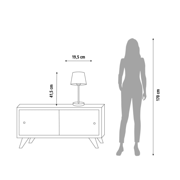 Wymiary lampy: wysokość – 41,5 cm, szerokość – 19,5 cm