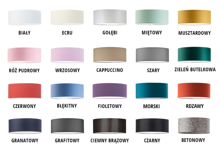 Jednym z największych atutów produktu jest jego dostępność w wielu wariantach kolorystycznych. Lampa ABIGAIL oferowana jest w szerokiej palecie barw – od klasycznych, stonowanych odcieni po bardziej wyraziste kolory. Dzięki temu bez trudu dopasujesz ją do indywidualnych preferencji oraz charakteru pomieszczenia.