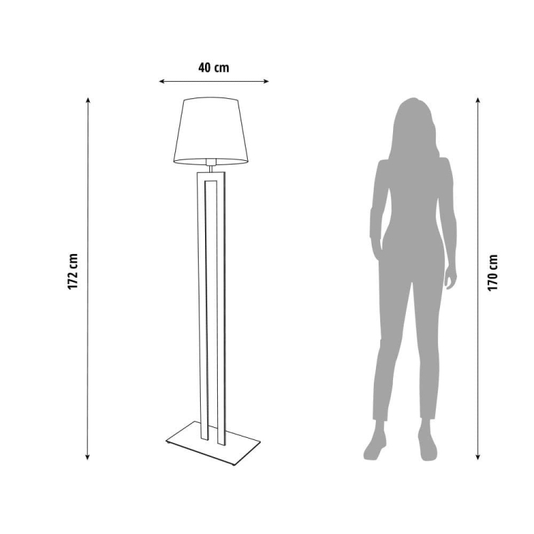 Wymiary lampy: wysokość 172 cm, szerokość 40 cm