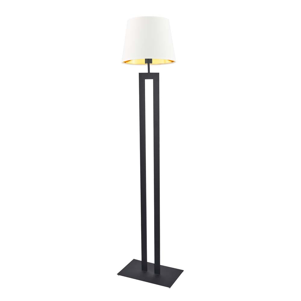 Lampa podłogowa ANIKA GOLD – czarna elegancja ze złotym wnętrzem abażura