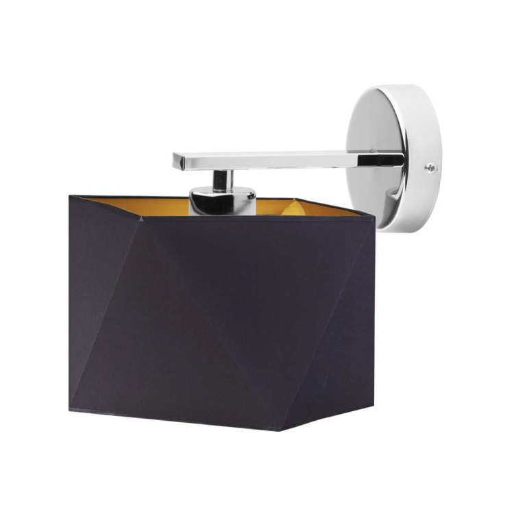 Kinkiet ścienny POLLY GOLD to klasyczny a zarazem nowoczesny model oświetlenia o ciekawym kształcie. Klosz lampy imituje diament a dodatkowo posiada wewnątrz złotą folię, dostępną w dwóch fakturach powierzchni – połyskliwą oraz zmatowioną. Wersja błyszcząca łączy się z białym kloszem, natomiast zmatowiona z pozostałymi odcieniami. Minimalistyczny stelaż dopełnia całości kompozycji i tworzy wraz z kloszem spójną i estetyczną całość. Światło emitowane góra – dół zapewni nam odpowiednie oświetlenie np. podczas czytania książki. Jej ciepło, które zawdzięczamy złotemu wnętrzu będzie tworzyło harmonię oraz spokój. Lampa wprost idealnie wpasuje się do pomieszczeń mieszkalnych tj. salony, sypialnie, domowe biura, pokoje młodzieżowe czy też jadalnie i korytarze. Kinkiet dostosowany jest do żarówki o trzonku E27 i mocy 60W. Mierzy 24 cm wysokości i 25 cm szerokości.