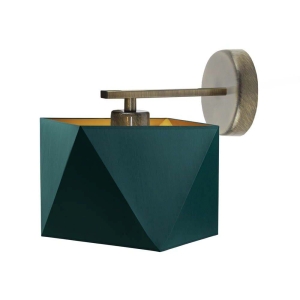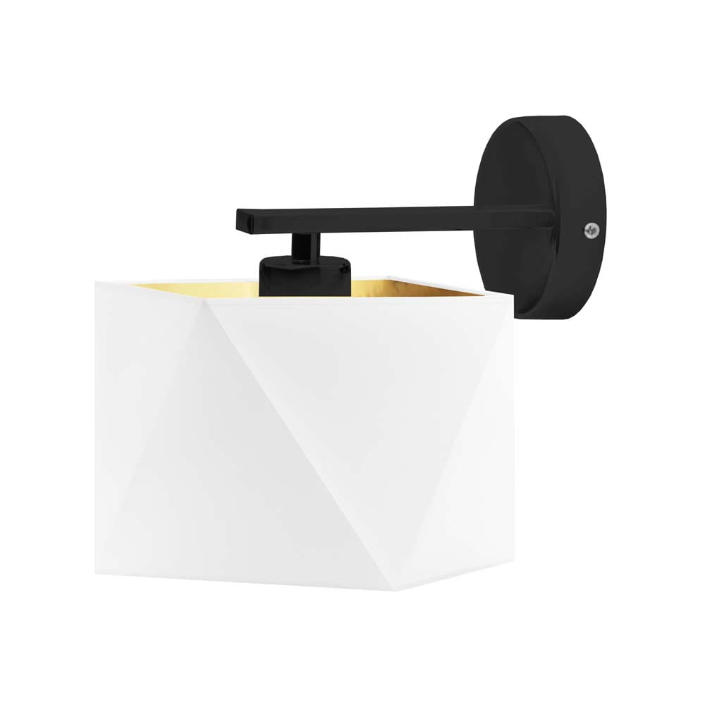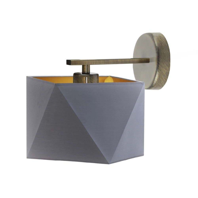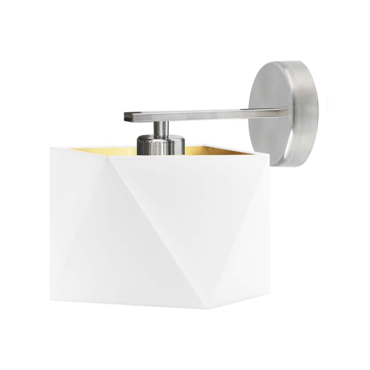 Kinkiet ścienny POLLY GOLD to klasyczny a zarazem nowoczesny model oświetlenia o ciekawym kształcie. Klosz lampy imituje diament a dodatkowo posiada wewnątrz złotą folię, dostępną w dwóch fakturach powierzchni – połyskliwą oraz zmatowioną. Wersja błyszcząca łączy się z białym kloszem, natomiast zmatowiona z pozostałymi odcieniami. Minimalistyczny stelaż dopełnia całości kompozycji i tworzy wraz z kloszem spójną i estetyczną całość.