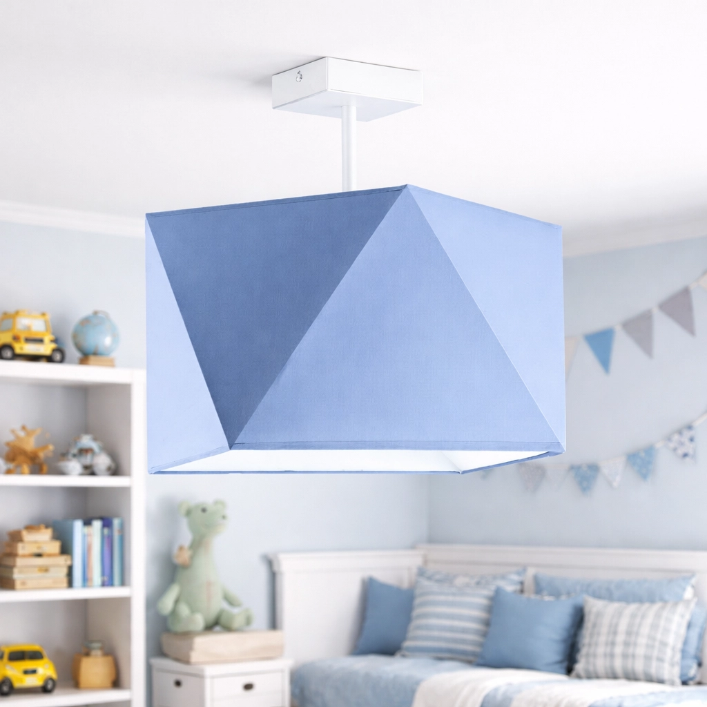 Lampa KERI to wyjątkowe połączenie minimalistycznej formy i dekoracyjnego charakteru, które doskonale odnajdzie się w nowoczesnych wnętrzach dziecięcych. Jej geometryczny, wielopłaszczyznowy abażur przyciąga wzrok i subtelnie rozprasza światło, tworząc przytulną atmosferę sprzyjającą zabawie i odpoczynkowi. Dzięki starannemu wykonaniu i dopracowanym detalom lampa prezentuje się niezwykle estetycznie zarówno z bliska, jak i w całej aranżacji pomieszczenia.