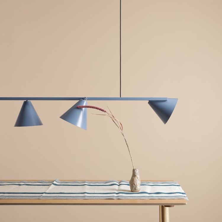 Geometryczna lampa wisząca 4-punktowa NORDIC CONE 4 w kolorze błękitnym