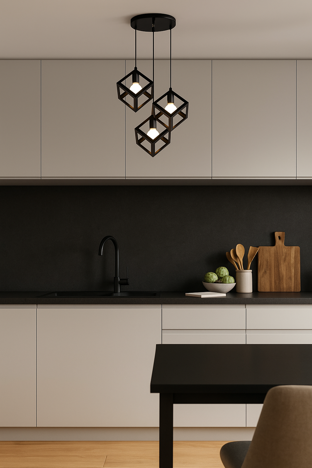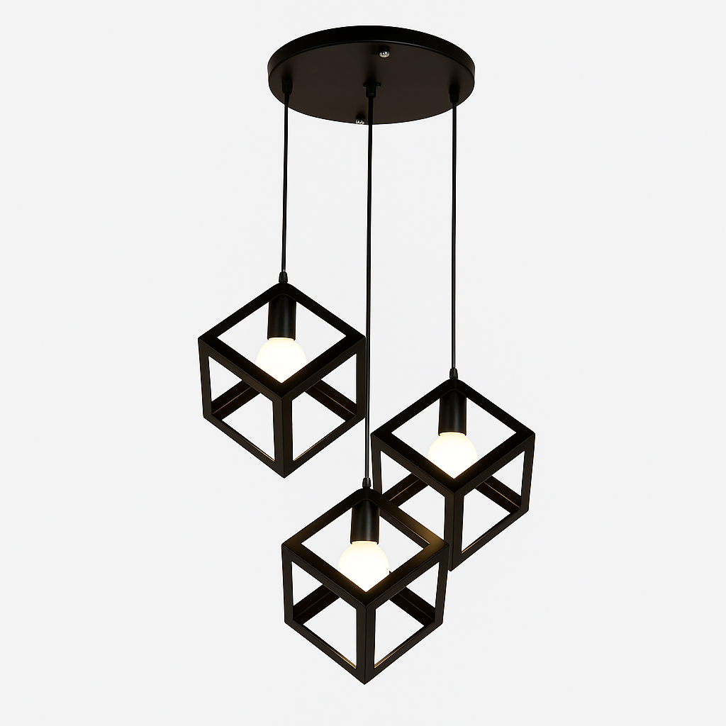 Lampa wisząca DEVON to idealne rozwiązanie dla miłośników nowoczesnego designu i oryginalnych form. Trzy geometryczne klosze w kształcie czarnych kostek sprawiają, że oprawa wyróżnia się minimalistycznym, a jednocześnie efektownym stylem. To doskonały wybór do kuchni, jadalni, salonu czy nad wyspę kuchenną – wszędzie tam, gdzie chcesz połączyć funkcjonalność z dekoracyjnym charakterem oświetlenia.