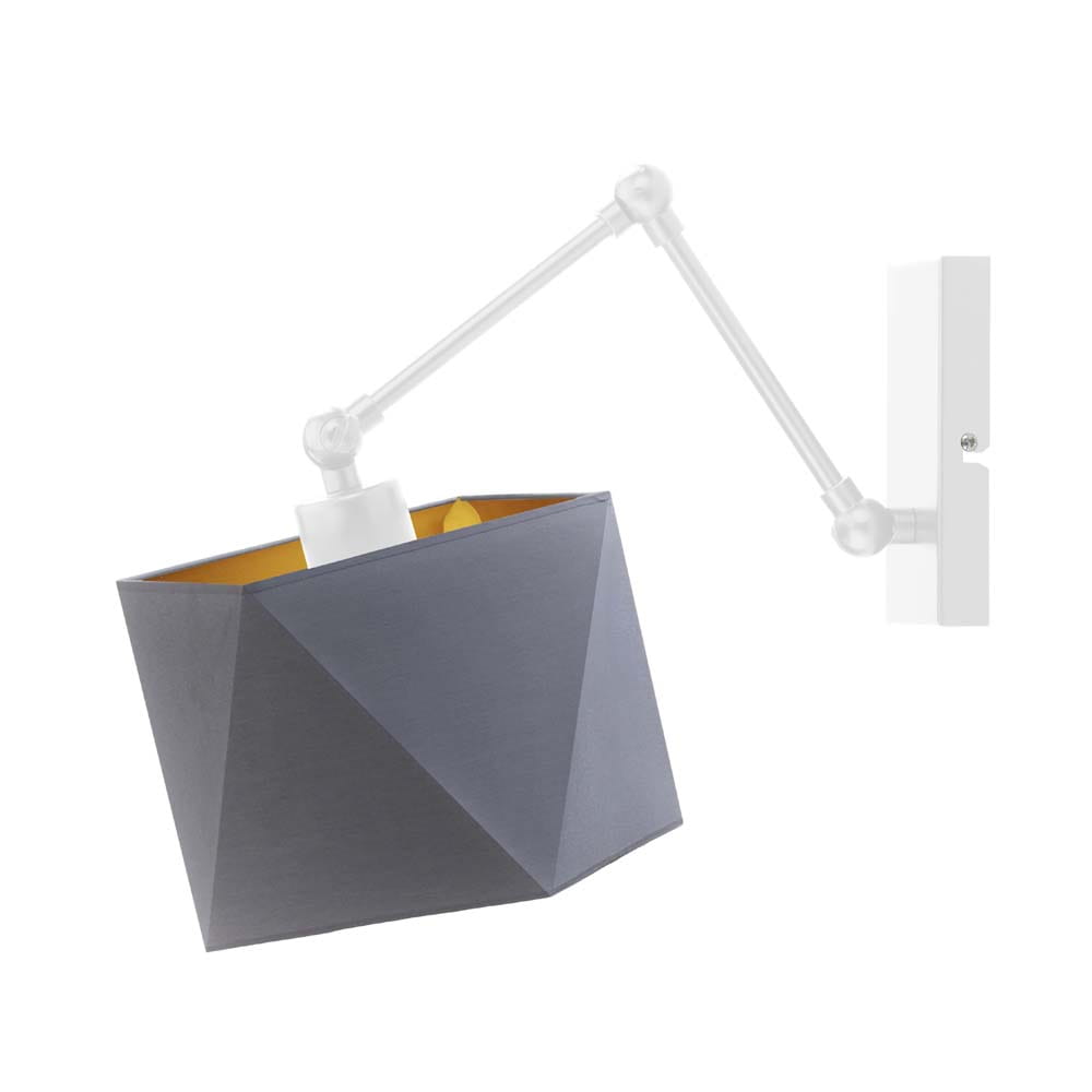 Kinkiet RACHEL GOLD to stylowe połączenie nowoczesnego designu i praktycznej funkcjonalności. Jego charakterystyczny, geometryczny abażur w eleganckim odcieniu szarości został wykończony złotym wnętrzem, które efektownie odbija światło i tworzy w pomieszczeniu przytulny, ciepły klimat. To detal, który nie tylko oświetla przestrzeń, ale również stanowi wyrafinowaną dekorację ściany.