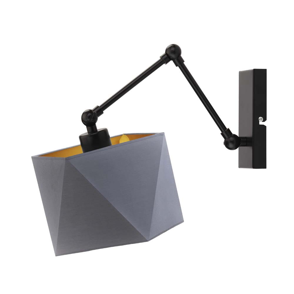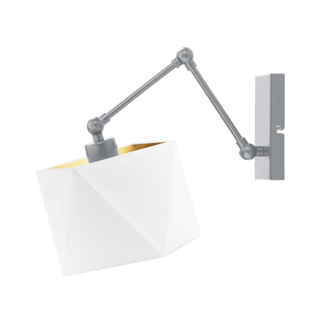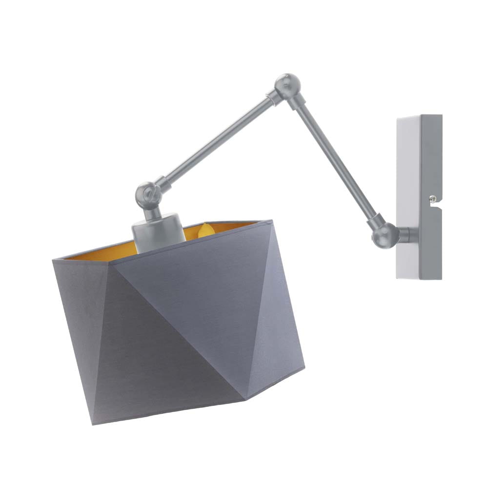 Najbardziej charakterystycznym elementem lampy jest geometryczny abażur w eleganckim, szarym kolorze. Jego wnętrze wykończone zostało w złotym odcieniu, który efektownie odbija światło i nadaje pomieszczeniu ciepłego, przyjemnego klimatu. Takie połączenie kolorów sprawia, że kinkiet RACHEL GOLD doskonale wpisuje się w nowoczesne trendy wnętrzarskie. Świetnie prezentuje się w aranżacjach w stylu nowoczesnym, loftowym, skandynawskim czy minimalistycznym.