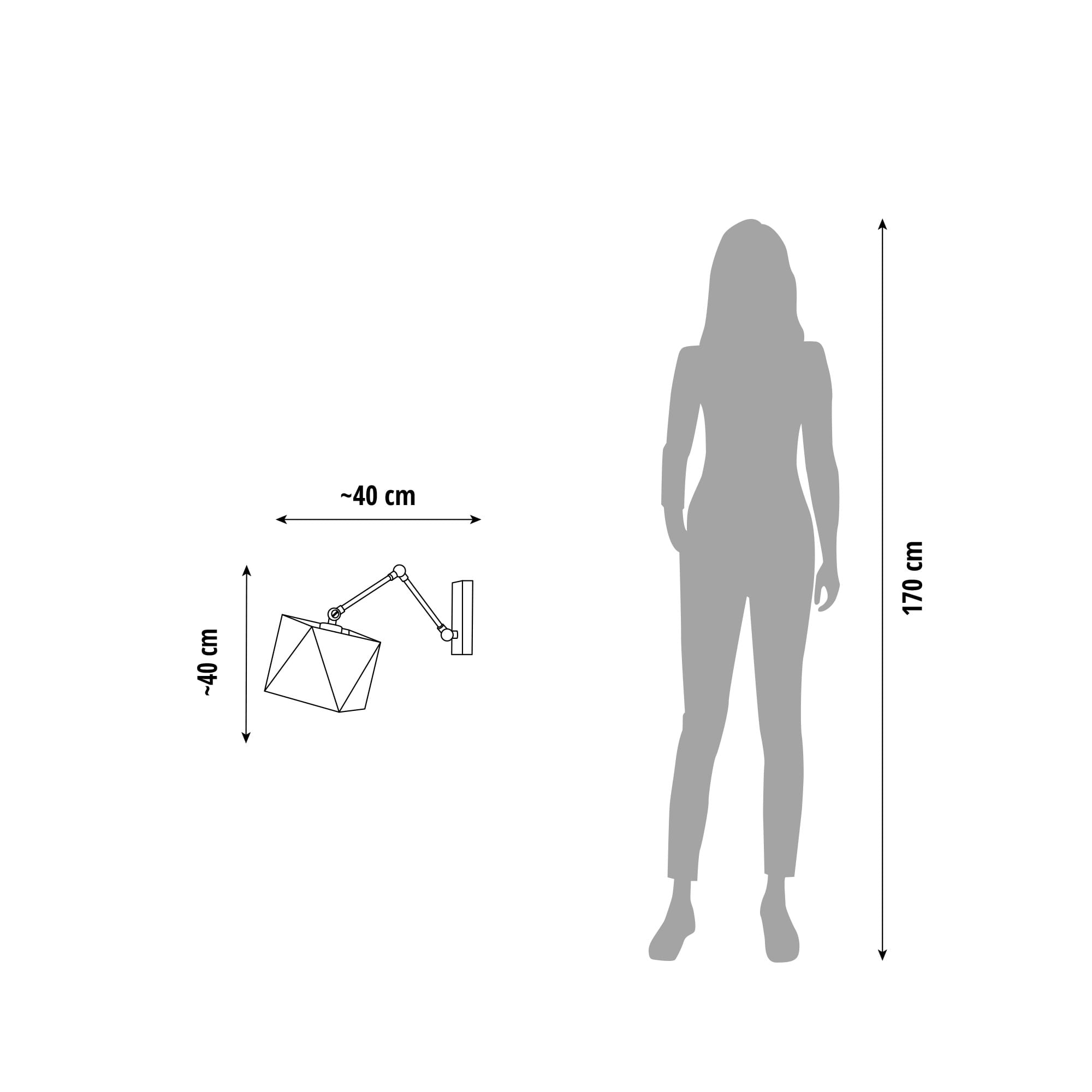 Wymiary lampy: wysokość – ok. 40 cm, szerokość – ok. 40 cm (regulacja rozpiętości)