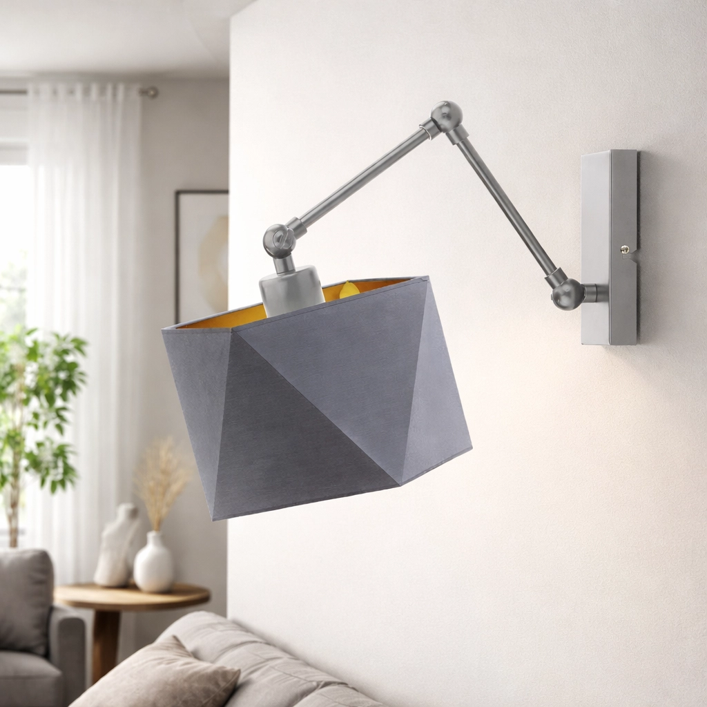Dużym atutem tej lampy ściennej jest regulowane ramię, które umożliwia precyzyjne ustawienie kierunku światła. Dzięki temu kinkiet może pełnić różne funkcje w zależności od potrzeb. Doskonale sprawdzi się jako lampka do czytania zamontowana przy łóżku w sypialni, praktyczne oświetlenie w salonie obok kanapy czy fotela, a także jako funkcjonalne światło w gabinecie lub korytarzu. Regulacja pozwala łatwo dopasować oświetlenie do aktualnej sytuacji – zarówno podczas relaksu, pracy, jak i wieczornego odpoczynku.