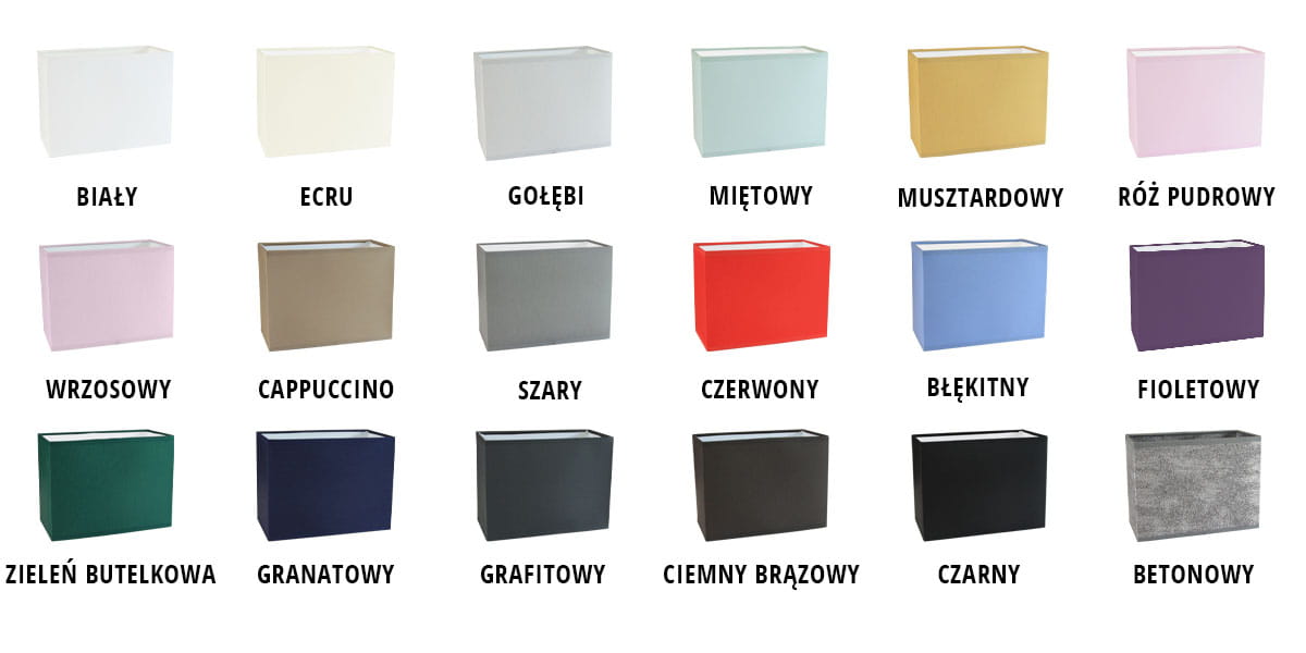 | Certyfikaty | zgodności CE oraz niepalności tkaniny abażurowej |