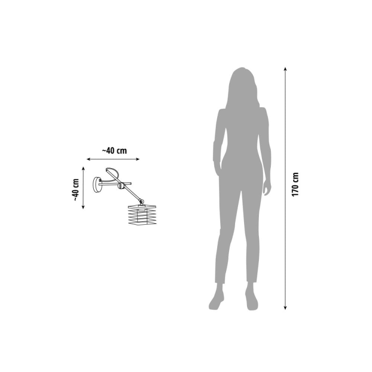Wymiary lampy: wysokość – 40 cm (regulowana), szerokość – 40 cm (regulowana)