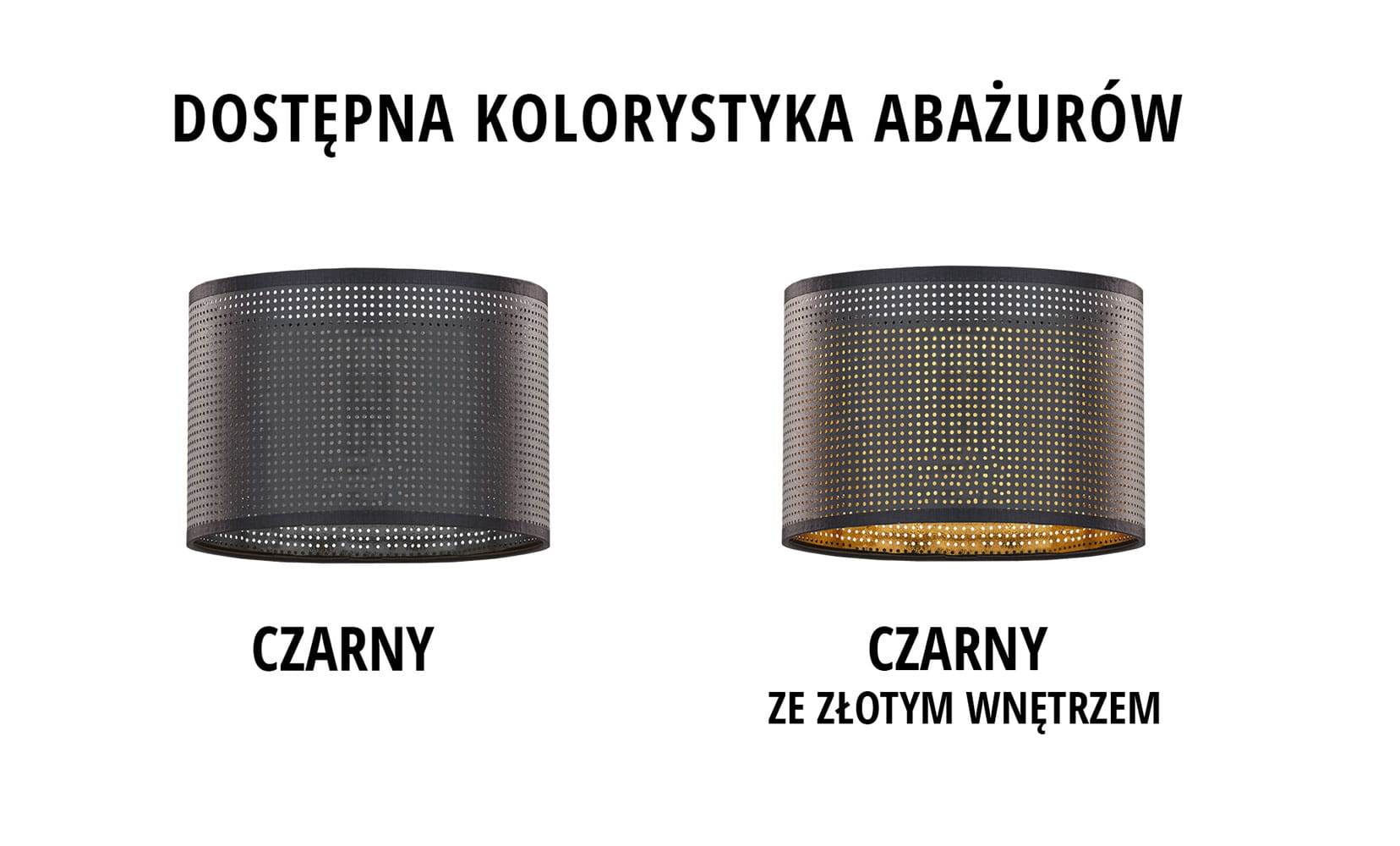Do wyboru są dwie wersje wnętrza klosza. Czarne daje bardziej skupione, surowe światło, podkreślające industrialny charakter aranżacji. Złote wnętrze ociepla barwę światła i wprowadza bardziej przytulną, elegancką atmosferę.