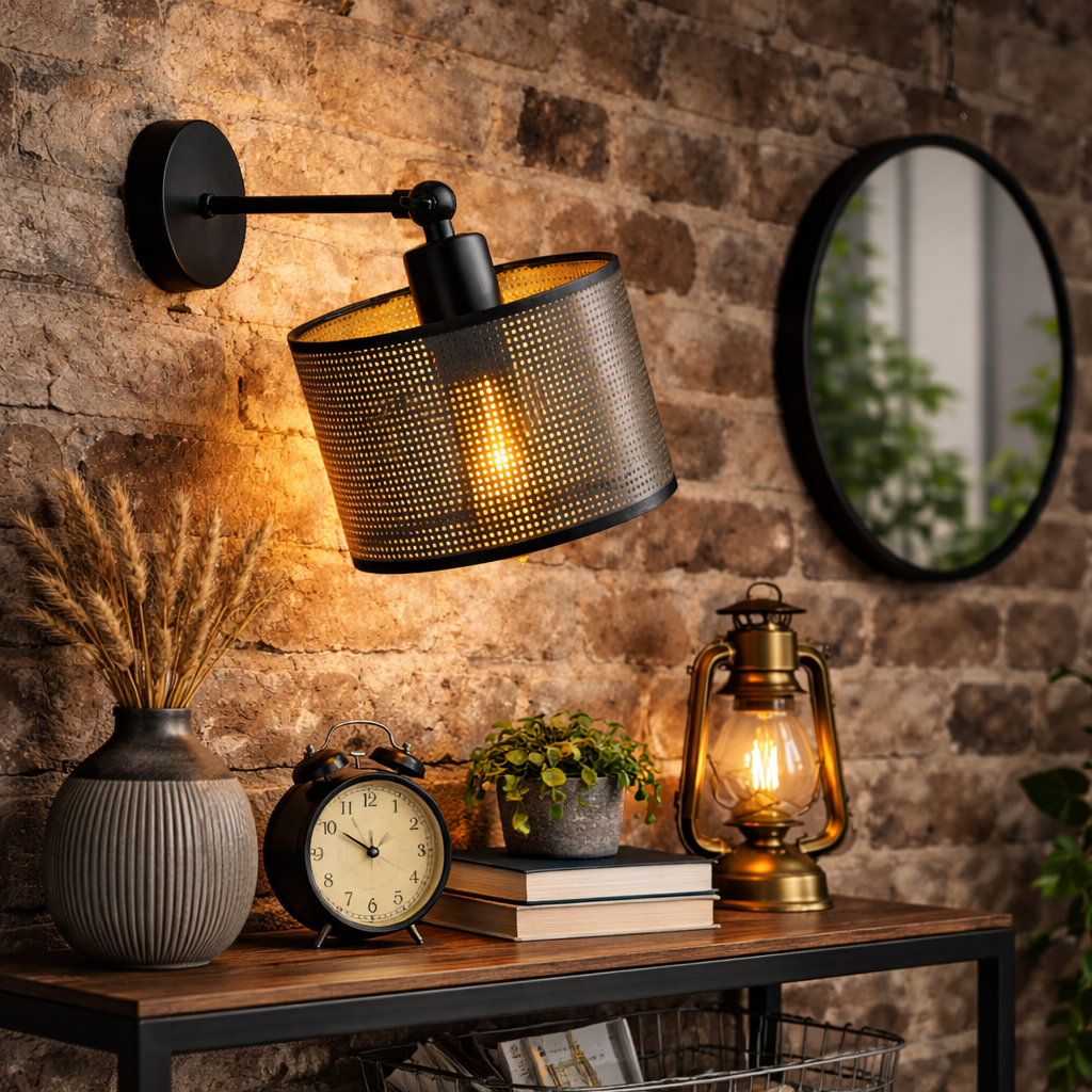 Ten nowoczesny kinkiet industrialny to połączenie wyrazistego designu i praktycznej funkcjonalności. Zaprojektowany z myślą o wnętrzach w stylu loft, industrialnym i nowoczesnym, doskonale sprawdzi się jako lampa ścienna do salonu, kinkiet do sypialni, oświetlenie ścienne do przedpokoju czy klimatyczna lampka ścienna nad łóżko. Regulowane ramię z przegubem umożliwia precyzyjne ustawienie kąta padania światła, dzięki czemu kinkiet pełni rolę zarówno dekoracyjną, jak i użytkową.