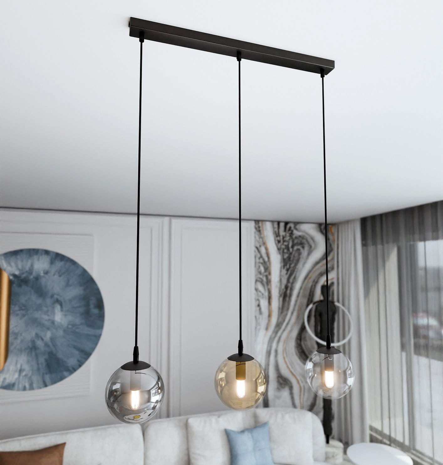 Kolorowa lampa wisząca na listwie OPALINA 3 ze szklanymi kloszami