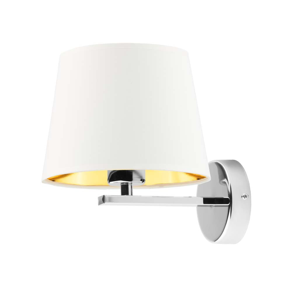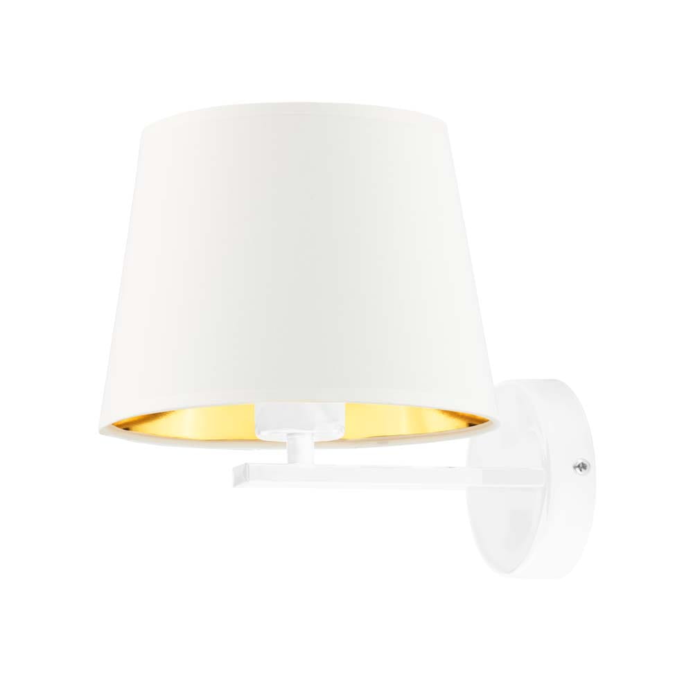 Jeśli chcesz dodać nieco eleganckiego stylu do Twojego salonu, sypialni czy też korytarza, wybierz klasyczny kinkiet SABINA GOLD. Został on wykonany z tkaninowego klosza oraz wytrzymałego metalu malowanego proszkowo, który nie tylko spełnia funkcje dekoracyjne, ale również jest łatwy w pielęgnacji. Znaczącą cechą, która od razu rzuca się w oczy jest obecność złotej folii w środku abażura. Faktury powierzchni wewnątrz kloszy różnią się od siebie. W połączeniu z białym kloszem faktura jest połyskliwa i dobrze odbija światło, natomiast w pozostałych odcieniach struktura ta pozostaje zmatowiona. Kinkiet idealnie podkreśli styl każdego salonu, sypialni jak i jadalni. Zadbaj o punktowe oświetlenie w Twoim domu a już niebawem będziesz mógł cieszyć się nastrojową atmosferą, którą ten model wprowadzi do aranżacji urządzonych zarówno w stylu klasycznym jak i współczesnym.