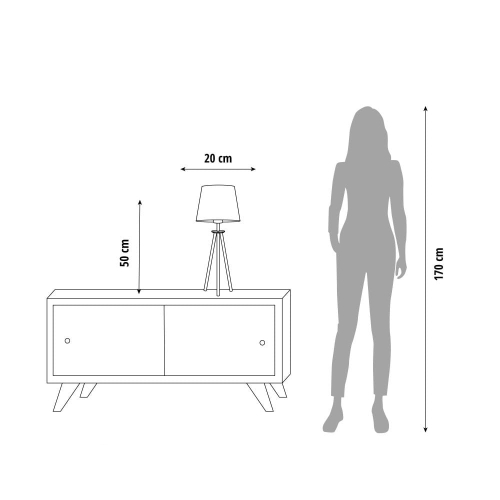 Wymiary lampy: wysokość – 174 cm, szerokość – 37 cm