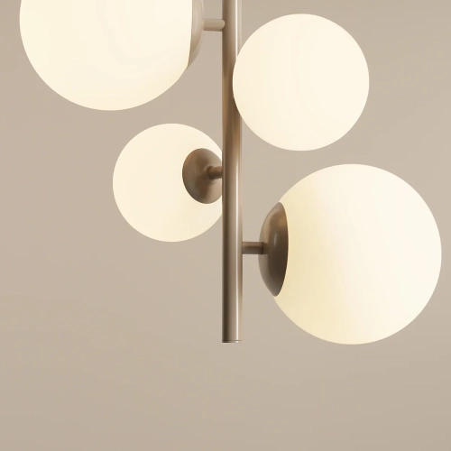 - Cztery szklane klosze: Lampa wyposażona jest w cztery eleganckie, mleczne klosze, które zapewniają równomierne i przyjemne oświetlenie, tworząc ciepłą i harmonijną atmosferę.